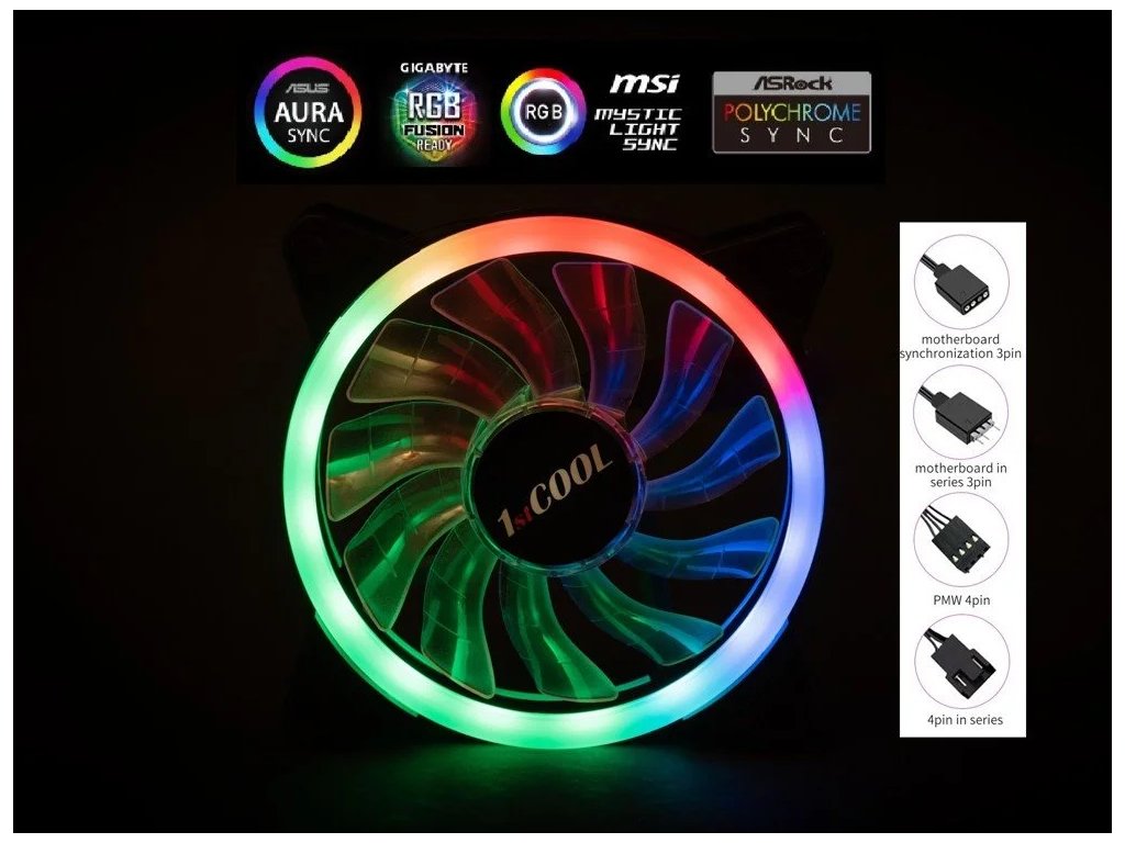 1stCOOL AURA EVO DUAL RING adresovateľný RGB ventilátor 12cm / 4pin PWM ventilátor napájanie IN + 4pin PWM OUT + ARGB 3pin IN + ARGB 3pin OUT - ARGB LED - až 365 farebných efektov - antivibračné podložky Príslušenstvo série AURA EVO 1stCOOL prináša vysokokvalitné moderné príslušenstvo ARGB LED série pre tuning vášho PC za veľmi zaujímavú cenu. Ventilátory série AURA EVO sú vybavené tromi konektormi, štandardným 4pinovým pre napájanie a reguláciu otáčok ventilátora a dvoma 3pinovými štandardnými ARGB konektormi (IN a OUT), ktoré umožňujú sériové zapojenie viacerých kusov a ich následné pripojenie k základnej doske PC, ak je vybavená 3pinovým ARGB konektorom, v opačnom prípade môžete použiť Aj v prípade ovládania rýchlosti ventilátorov máte na výber, či chcete ventilátory pripojiť priamo k základnej doske, alebo opäť ovládať ich rýchlosť pomocou diaľkového ovládača, ktorý je súčasťou nášho ovládača (možnosť úplného zastavenia). Môžete si tiež vybrať z niekoľkých variantov hotových zostáv alebo si zostaviť riešenie podľa vlastných preferencií, všetky komponenty sú navzájom kompatibilné. A pomocou ovládača a diaľkového ovládania máte možnosť ovládať výber a rýchlosť efektov, regulovať intenzitu podsvietenia, rýchlosť ventilátorov alebo pripojiť celý systém priamo k základnej doske počítača prostredníctvom trojpinového konektora ARGB. Riešenie je kompatibilné s ASUS Aura Sync, MSI Mystic Light, GIGABYTE RGB Fusion a ASRock Polychrome Sync.Dodatočné parametre
