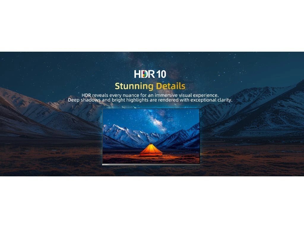 Televízor je vybavený technológiou dekódovania videa HDR pre vyššiu kvalitu obrazu. Odhaľuje najjasnejšie farby a zároveň najtmavšie tiene. Vďaka nej uvidíte viac detailov. Vychutnajte si doma dokonalý filmový audiovizuálny zážitok a staňte sa súčasťou diania na obrazovke.