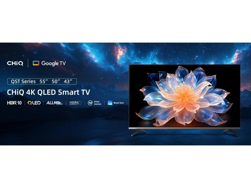 CHiQ 43" U43QST, ultratenký kovový bezrámikový QLED Smart Google TV 5.0 s viacerými hernými funkciami, HDR10, HLG, obrazovkou Ultra HD s rozlíšením 3840 x 2160 pixelov, priestorovým zvukom Dolby Audio a dbx-tv.