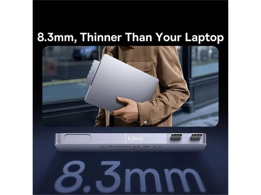 Ultra rýchly prenos 40 Gb/s: 4/3 porty Thunderbolt, prenos 2 GB súboru za niekoľko sekúnd; podporuje rozlíšenie 4K 60 Hz na krištáľovo čistú projekciu na displeji; Magnetický dizajn - s magnetickou nálepkou pre bezpečnejšie pripojenie bez poškodenia pôvodného portu alebo blokovania nabíjacieho portu Ultra tenké 8,3 mm telo: miniatúrny a kompaktný dizajn, ktorý sa ľahko integruje do notebooku a ľahko sa prenáša a skladuje Rýchle čítanie kariet: rýchlosť až 104 MB/s nabíjanie notebooku Vynikajúca kontrola teploty: technológia chladenia BCT (Baseus Cooling Tech) pomáha odvádzať teplo pre stabilnejší prevádzku pri plnom zaťažení bez prehrievania. Vhodné na domáce použitie s dostupnou kapacitou viac ako 10 000 mAh: SD/TF: 104 MB/s Vstup: 5V 3A; 9V 3A; 15V 3A; 20V 5Výstup: 5V 0,9Kompatibilné systémy; CPA CZECH sro, U Panasonicu 376, 53006 Pardubice - Staré Čívice, Česká republika, e-mail: cpa@cpa.cz, web: www.cpa.czDodatočné parametre