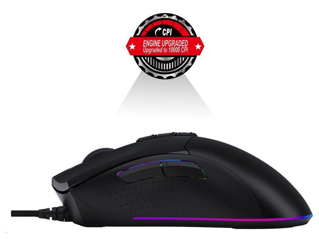 Podrobnosti o produkte Herná myš s rozlíšením až 10000DPI, skvelá pre E-šport Plne nastaviteľné RGB podsvetlenie Možnosť voľby parametrov bez nutnosti ovládača priamo na myši: - LOD (Lift off Distance) nastavenie vzdialenosti herného povrchu - R-Hz (Report Rate) nastavenie obnovovacej frekvencieDodatočné parametre