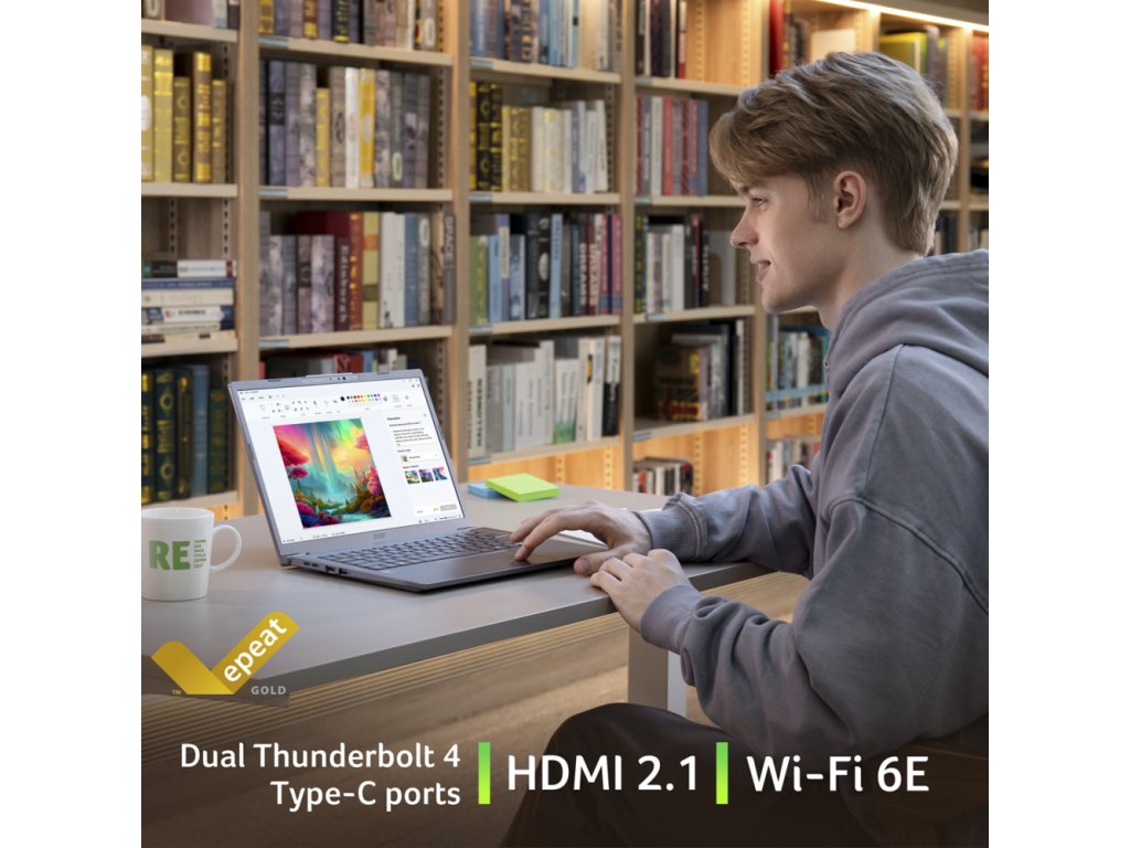 Operačný systém: Windows 11 Home Procesor: Intel Core Ultra 5 226V (8 jadier - 4P + 4LPE, 8 vlákien, jadro P 2,1/4,5 MB cache) NPU: Intel® AI Boost NPU až 40 TOPS Pamäť: 16 GB LPDDR5X na doske Pevný disk: 512 GB PCIe NVMe SSD PM4 Optická jednotka: nie Čítačka pamäťových kariet: nie Displej: 14" WUXGA (1920x12 100%/Adobe 100%, 400 nitov, podpora HDR True black 500, TÜV Low Blue/Eyesafe Grafická karta: Intel Arc 130V Zvuk: 2x reproduktor; 2x mikrofón Webová kamera: FHD IR USB TNR Presný touchpad Čítačka otlačkov prstov: nie Síť: nie Bezdrôtová komunikácia: WLAN + Bluetooth (Wifi 6E Intel AX211 802.11ax 2x2 + BT 5.3) (podpora DisplayPortu cez USB-C/USB nabíjanie 5V; 3A/DC-in port 20V; Type-C™: USB4® 40Gb/s/Thunderbolt™ 4 2x USB 3.2 Gen1 Ďalšie porty: 1x kombinovaný konektor pre sluchátka/mikrofón (3,5 mm) 1x HDMI 2.1 1x bezpečnostný slot Kensington Batéria: 65Wh Li-ion Napájanie: 65 Rozmery: 318,9x225,1x16,9 mm Hmotnosť: približne 1,4 kg Záruka: 2 rokyDodatočné parametre