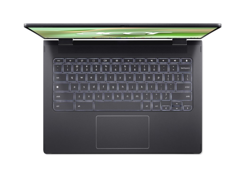 Model: Chromebook Spin 714 (CP714-2WN-55L7) Operačný systém: Chrome OS Procesor: Intel Core i5-1335 (10C, 12 MB Cache, až 4,60 GHz) Certifikácia Intel EVO. Pamäť: 8 GB LPDDR4X integrovaná na doske + N/A 256 GB PCIe NVMe SSD PM4 + N/A Rozširujúce sloty pre pevné disky: nie Optická jednotka: nie Displej: 14" WUXGA 1920x1200 16:10 IPS lesklý sRGB zabudovaným v tele notebooku Grafická karta: Intel Iris Xe Graphics Polohovacie zariadenie: TouchPad Podsvietená klávesnica: áno Numerická klávesnica: nie Webová kamera: QHD MIPI TNR Čítačka otlačkov prstov: nie Síť: nie Ethernet Bezdrôtová komunikácia: WIFI 6E Intel 802. 2x port USB typu C s podporou: Thunderbolt 4 / Display port cez USB-C / USB nabíjanie 5 V; 3 A/DC-in port 5 Li-ion Napájanie: 65 W USB typu C Farba: ocelovo šedá Materiál: hliník Rozmery: 312,6 x 224 x 18,05 mm Hmotnosť: 1,37 kg Záruka: 2 rokyDodatočné parametre