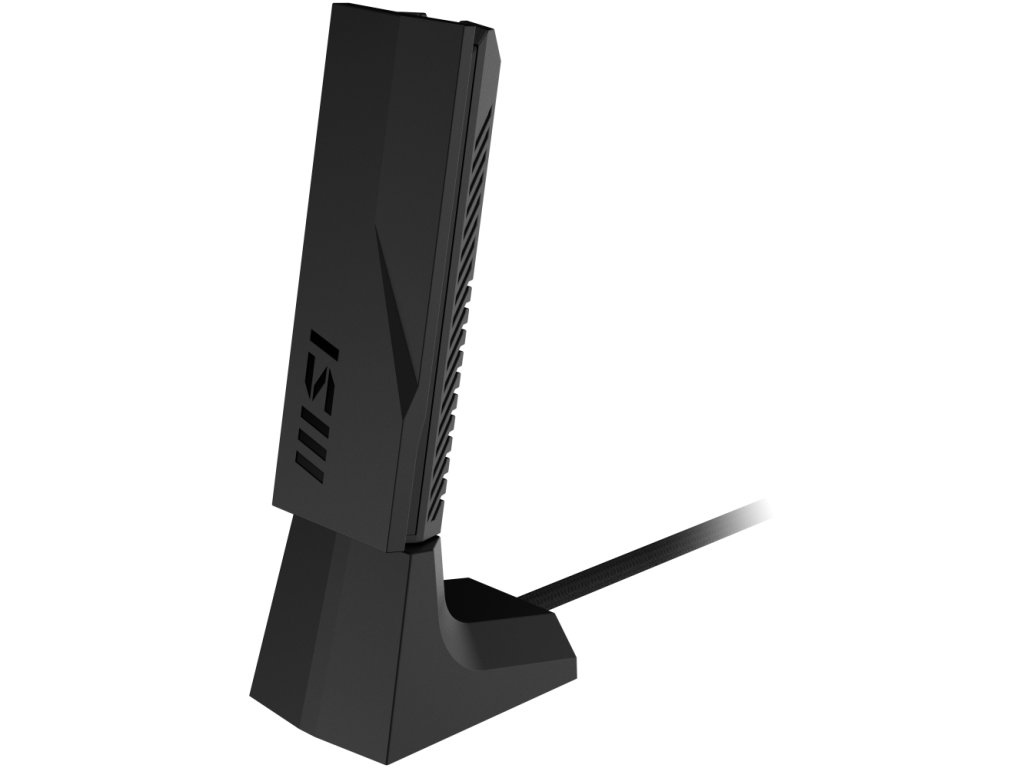 Adaptér MSI BE6500 WiFi 7 USB Kompaktný Wi-Fi USB adaptér poskytuje takmer okamžité vylepšenie pre váš stolný počítač alebo notebook. Vďaka podpore Wi-Fi 7 ponúka prenosové rýchlosti až 2880 Mb/sv pásme 6 GHz, 2880 Mb/sv pásme 5 GHz a 688 Mb/sv pásme 2,4 GHz. Vďaka zvýšenej šírke pásma je ideálny pre vysoko výkonné aplikácie a preplnené sieťové prostredie. Naklápacia anténa s vysokým ziskom spolu s technológiou Beamforming zabezpečuje najlepšie pokrytie signálom pre plynulé a stabilné pripojenie. Šifrovanie WPA3 zvyšuje ochranu vašej siete. Dodávaná kolíska vám umožňuje flexibilne umiestniť adaptér, kamkoľvek potrebujete. ZÁKLADNÉ ŠPECIFIKÁCIE Rozhranie: 1× USB 3.2 Gen1 (USB 3.0) Frekvencia: 2,4 GHz, 5 GHz, 6 GHz Síťový štandard: 802.11 a/b/g/n/ac/ax/be GHz - 2880 Mbps Zabezpečenie siete: WPA-PSK, WPA2-PSK/Enterprise, WPA3-Personal/Enterprise Rozmery: 111 × 33 × 20 mmDodatočné parametre