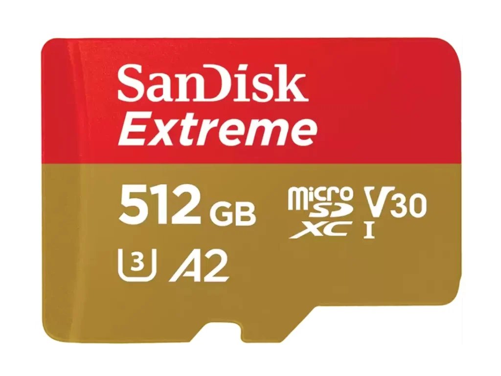 Karta SanDisk Extreme microSDXC UHS-I Kapacita: 512 GB Kompatibilita: microSDHC, microSDXC, microSDHC UHS-I a microSDXC UHS-I podporujúce hostiteľské zariadenia Rozmery: 1,02 mm x 14,99 mm x 10,92 mm Sekvenčná rýchlosť čítania: 0 MB/sDodatočné parametre