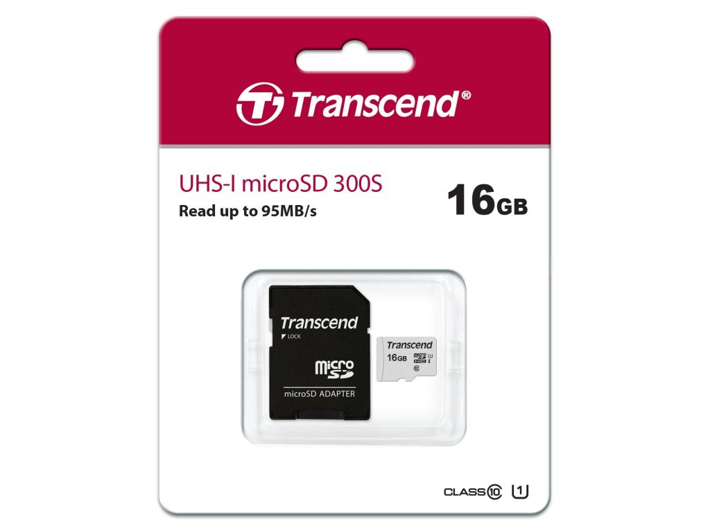 Transcend 16GB microSDHC 300S UHS-I U1 (Class 10) pamäťová karta + adaptér SD, až 95/10 MB/sDodatočné parametre