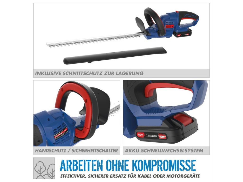 Stríhanie živých plotov zo zeme nebolo nikdy jednoduchšie! S akumulátorovými nôžkami na živý plot Güde HS18-0 sa táto náročná práca stane hračkou vďaka skvelým vlastnostiam a funkciám, ako sú dokonale navrhnuté protibežné čepele s laserom hrdzanými a diamantom brúsenými čepeľami a funkcia QUICK STOP, ktorá veľmi rýchlo zastaví čepele. Stríhacie hlavy je možné nastaviť do 4 poloh (0-90 °), vďaka čomu pohodlne dosiahnete aj na hornej a bočnej časti veľkých živých plotov. Stroj sa ľahko používa a je bezpečný vďaka 2-bodovému bezpečnostnému spínaču, kovovej prevodovke a mäkkej ergonomicky tvarovanej rukoväti spolu s praktickým popruhom na prenášanie. Nôžky sú poháňané 18 V Li-Ion akumulátorom bez pamäťového efektu, ktorý sa môže pochváliť dlhou životnosťou vďaka minimálnemu samonabíjaniu. Akumulátor a nabíjačka nie sú súčasťou dodávky. Kľúčové vlastnosti: Ideálny pomocník na strihanie vysokých živých plotov. Nastaviteľná teleskopická rukoväť Presné laserom a diamantom brúsené protibežné čepele Až 4 polohy strihacej hlavy na pohodlné strihanie hornej časti plotu Vysoká bezpečnosť práce vďaka 2-bodovému bezpečnostnému spínaču Ergonomicky tvarovaná rukoväť a popruhy pre maximálne pohodlie Technické údaje: - 1 rezu: 15 mm - Dĺžka rezu: 510 mm - Rýchle zastavenie čepele: áno - Otočná rukoväť: 5-krát - Hlučnosť LWA: 94 dBDodatočné parametre