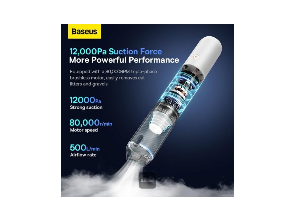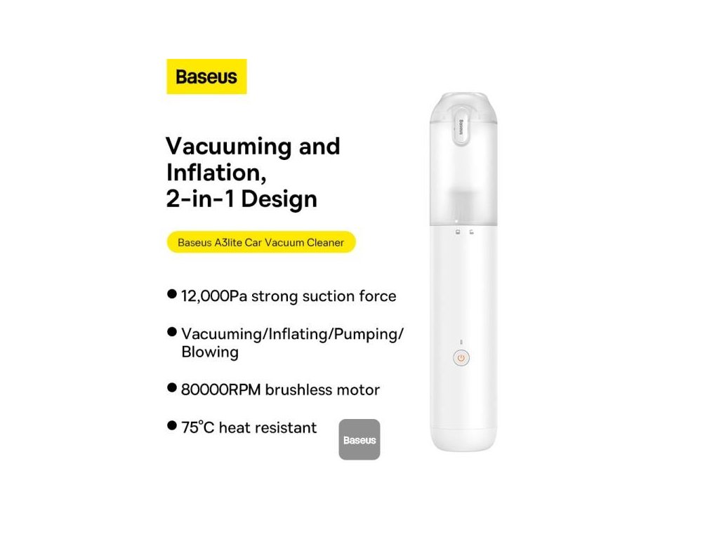 Akumulátorový vysávač do auta Baseus A3lite 12000Pa biely