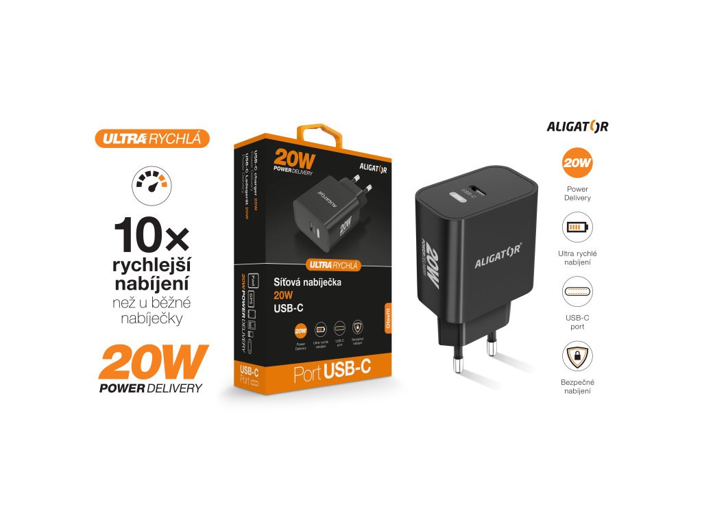 USB-C ALIGATOR Power Delivery 20W rýchla sieťová nabíjačka