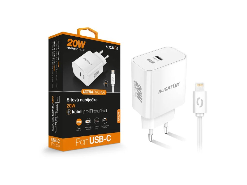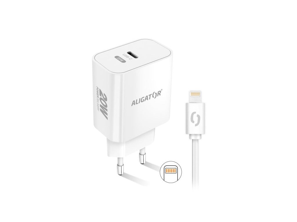 ALIGATOR PD 20W rýchlonabíjačka USB-C s káblom USB-C/Lightning (iPhone), biela