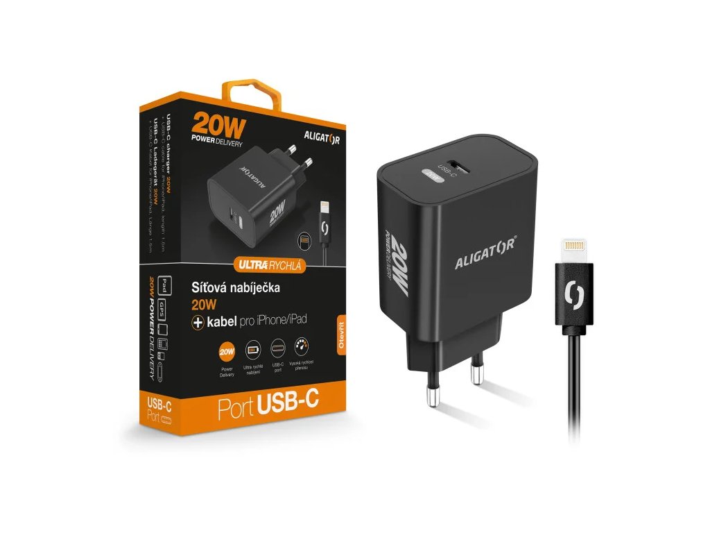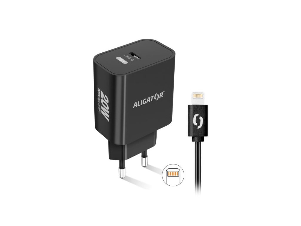 ALIGATOR PD 20W rýchlonabíjačka USB-C s káblom USB-C/Lightning(iPhone), čierna