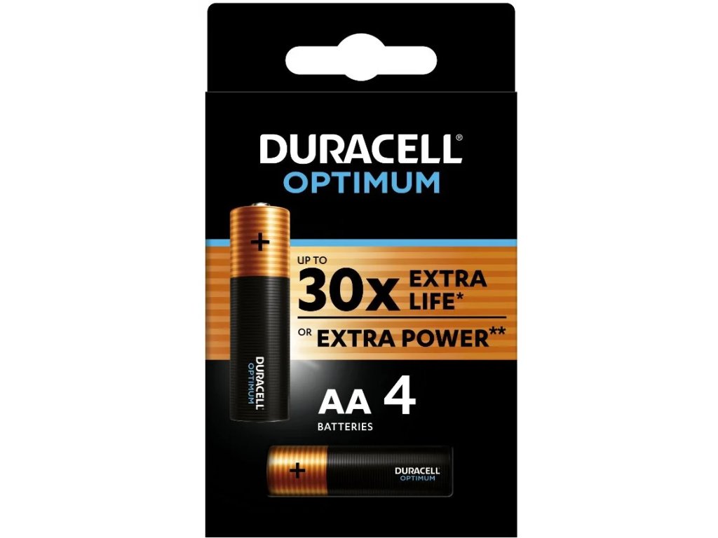 Alkalické batérie Duracell Optimum vydržia až 30-krát dlhšie (v porovnaní s prednými zinkovými batériami AA v štandardnom teste digitálnych fotoaparátov IEC 2015 (www.iec.ch). Výsledky sa môžu líšiť v závislosti od zariadenia a použitia.) a sú ponúkané vo verziách AA a AAA. Technológia Duralock udrží nepoužívané batérie Duracell ako nové a nabité až 10 rokov pri bežnom skladovaní. Tieto batérie sú preferovanou voľbou alkalických baterií Duracell pre zariadenia, ktoré vyžadujú vysoký výkon, ako sú digitálne fotoaparáty, fotografické blesky, hračky na batérie alebo prenosné rádiá, a možno ich používať aj v bežne používaných zariadeniach, ako sú hračky napájané batériami, baterky, prenosné herné ovládače, holiace strojčeky, zubné kefky a ďalšie.Dodatočné parametre