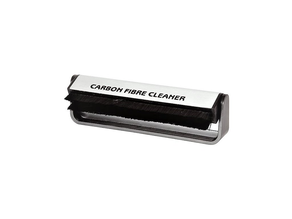 Plochý kefka na čistenie LP platní s uhlíkovými vláknami a antistatickým účinkom Pomocou tohto antistatického kartáčku môžete jemne, rýchlo a účinne vyčistiť prach a nečistoty z vašich vzácnych vinylových platní. Uhlíkové vlákna sú vodivé a dostatočne jemné na to, aby prenikli hlboko do drážok a zbavili sa väčšiny nečistôt. Vodivosť tisícov vlákien tiež pomáha odvádzať statický náboj, čím sa eliminuje praskanie počas prehrávania. Pravidelné čistenie drážok platní prináša lepší zvukový zážitok a zároveň predĺžuje životnosť stylusu a platne. POSTUP ČISTENIE 1) Umiestnite gramofónovú platňu na gramofón a zapnite otáčanie gramofónu. 2) Držte kefku vodorovne s gramofónovou platňou za hliníkovú rukoväť a jemne pritlačte štetiny kefky na drážky gramofónovej platne. (Dávajte pozor, aby sa drážok dotýkali len uhlíkové vlákna kefky.) (Pre zvýšenie účinnosti odporúčame vlákna kefky pred priložením na platňu mírne navlhčiť čistiacim a antistatickým roztokom Analogis STATIC CLEANER 6075.) 3) Počas otáčania kefky pomaly ťahajte (pozri obrázok vyššie). Nechajte gramofón raz alebo dvakrát otočiť, kým štetiny kartáča nezachytia všetok prach a nečistoty. 4) Pred prehrávaním každej strany platne zopakujte vyššie uvedený postup a medzi čisteniami odstráňte všetky zachytené nečistoty zo štetín kefky tak, že raz alebo viackrát otočíte plastový kryt kefky okolo štetín. Poznámka: Ak je kefka na štetce poškodená, je potrebné ju vyčistiť a vyčistiť: Nedotýkajte sa štetín z uhlíkových vlákien ani ich nevystavujte neprimeranému tlaku, napätiu alebo ohýbaniu.Dodatočné parametre