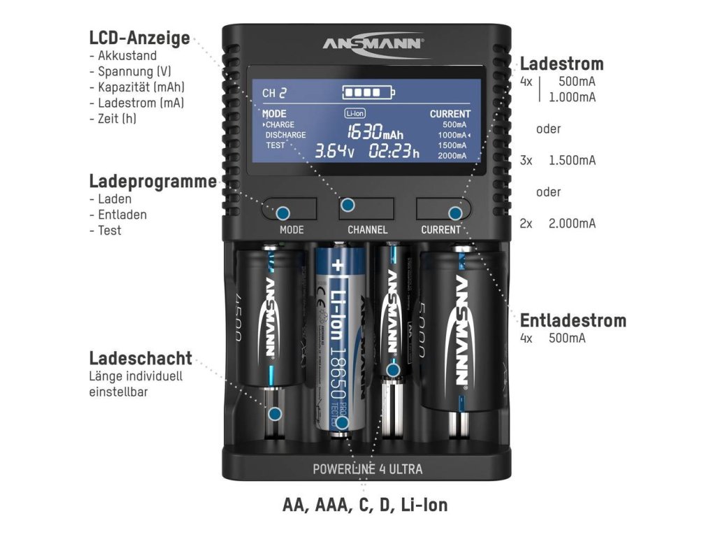 Plne automatická nabíjačka - li-ion/NiMKontrola jednej šachty 1 až 4 bateriíPre NiMH AA/AAA/C/D a li-ion 10440 až 26650 Design - Riadená mikroprocesorom - Metoda vypnutia Minus Delta U - Nastaviteľný nabíjací proud - Funkcia vybíjania batérie - Impulzné udržiavacie nabíjanie - Ochrana proti prepólovaniu - Ochrana proti skratu - LCD DISPLEJ Obsah balenia - Powerline 4 Ultra - Napájací zdroj - Návod na obsluhuDodatočné parametre