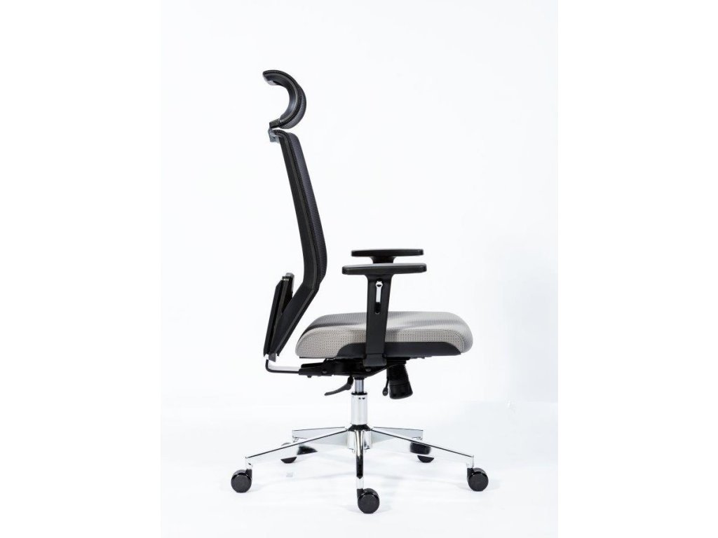 kancelárska stolička s uhlovo nastaviteľným podhlavníkom, operadlo so sieťovinou a výškovo nastaviteľnou bedrovou výstuhou, nastavenie výšky operadla so systémom up-down, synchrónny mechanizmus s niekoľkonásobnou aretáciou a nastavením sily protiváhy, chrómovaná oceľová báza, kolieska s priemerom 60 hĺbky sedadla, výškovo nastaviteľné podrúčky s mäkkou dotykovou plochou, nosnosť 130 kgDodatočné parametre