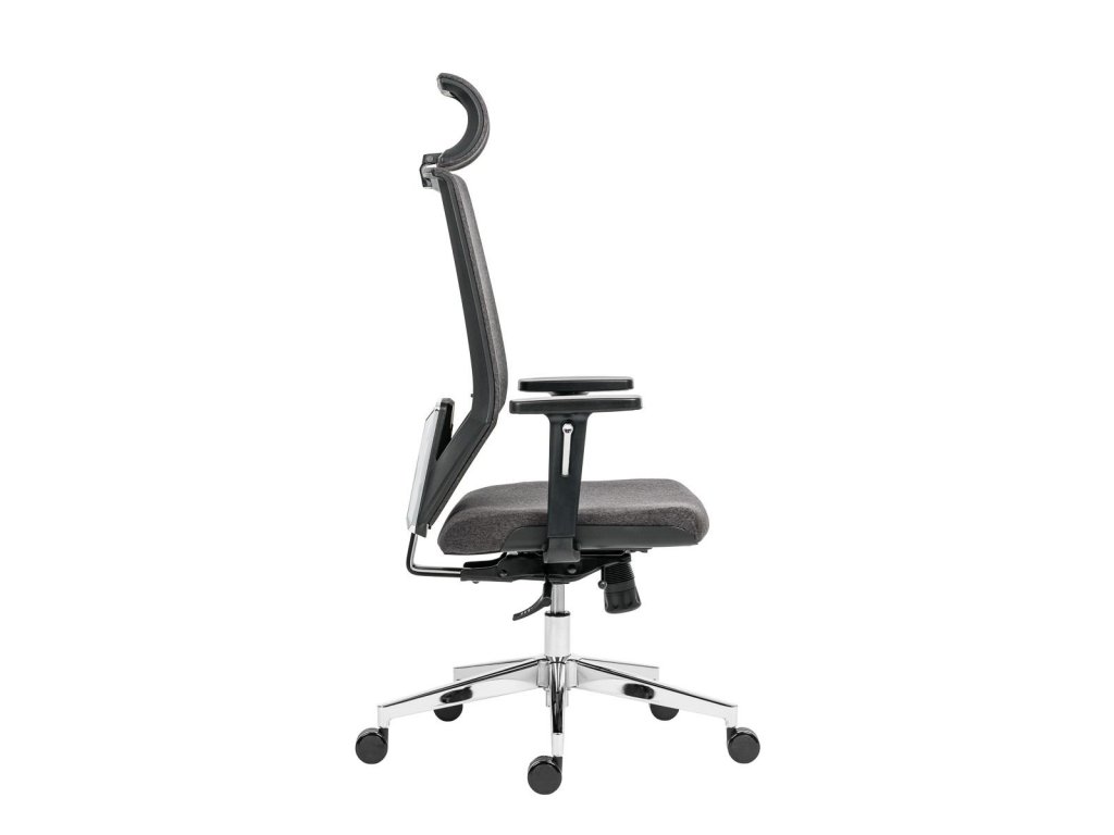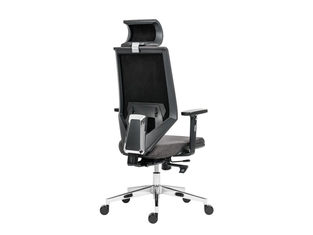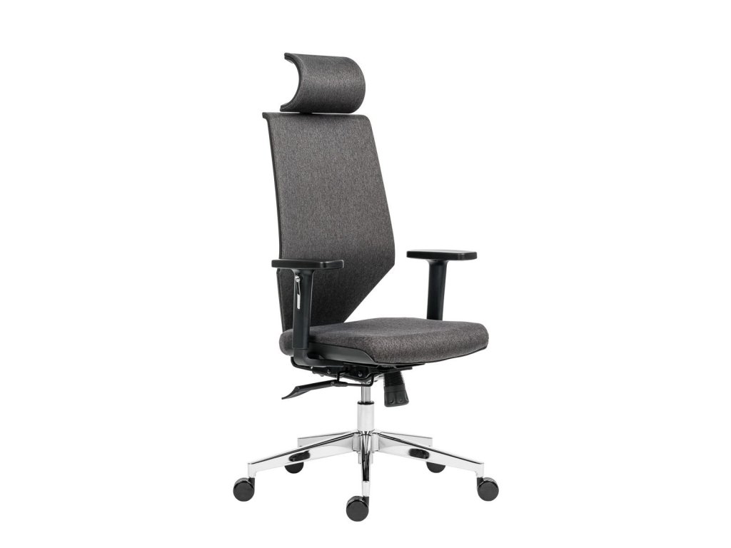 kancelárske kreslo s čalúnenou opierkou hlavy, operádlom čalúneným sivou látkou a výškovo nastaviteľnou bedrovou opierkou, výškovo nastaviteľné opierka so systémom up-down, synchrónnym mechanizmom s viacnásobnou aretáciou a nastavením sily protiváhy, pochrómovaná oceľová použiteľné na všetky povrchy, mechanizmus SL na nastavenie hĺbky sedadla, výškovo nastaviteľné podrúčky s mäkkým dotykovým povrchom, sivá farba poťahu sedadla, nosnosť 130 kgDodatočné parametre