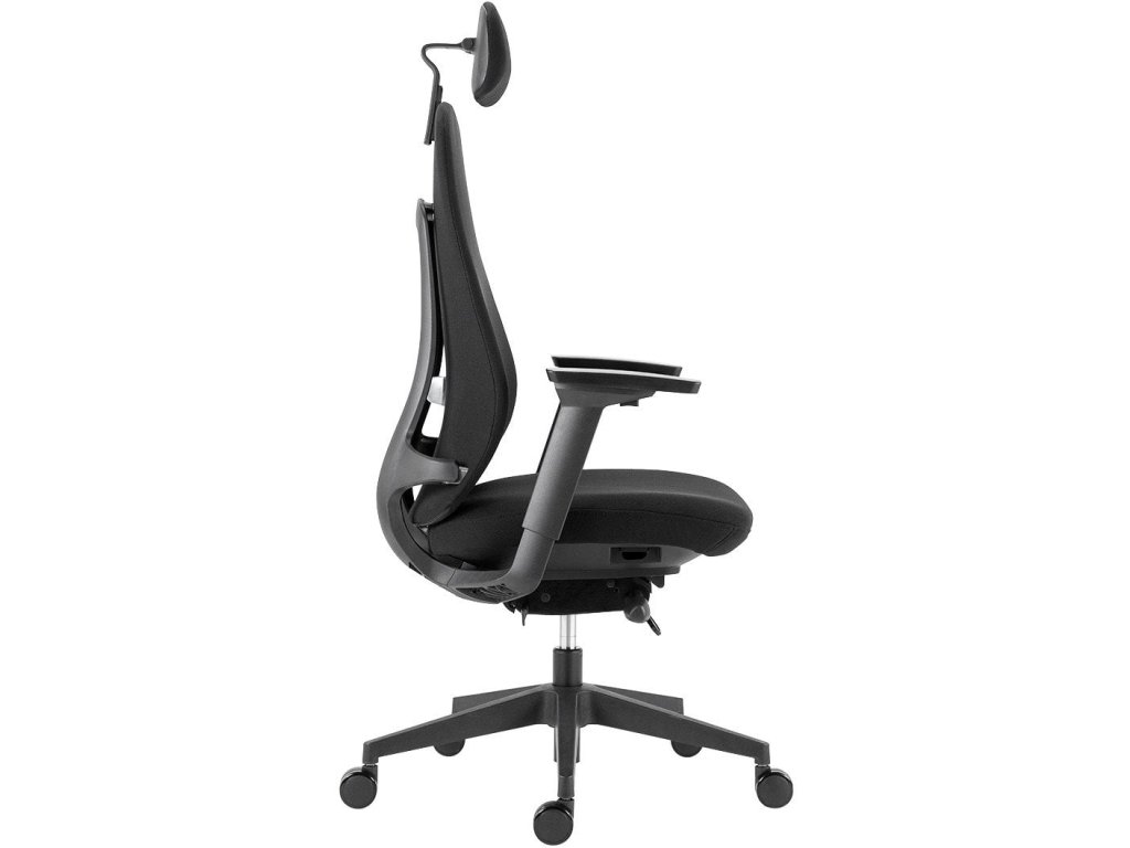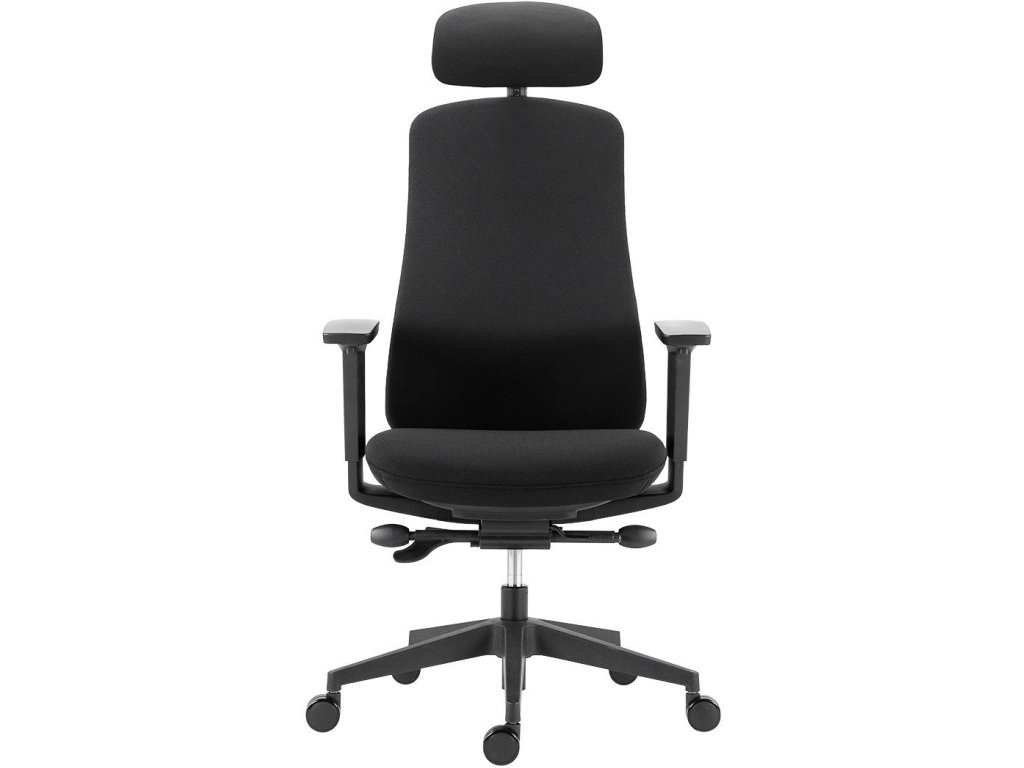 Popis produktu / Product description • celočalúnená kancelárska stolička s podhlavníkom a podrúčkami • synchrónny mechanizmus s možnosťou plynulej premeny uhla sedadla a operadla, možnosť aretácie v 5 pozíciách, automatické nastavenie tuhosti mechanizmu podľa telesnej hmotnosti užívateľa s 4 stupňami nastavenia intenzity • ergonomicky umiestnený operadla 0-5 o s aretáciou v základnej vodorovnej polohe • mechanizmus na nastavenie hĺbky sedadla 0-40 mm • podhlavník s nastavením uhla a výšky • výškovo nastaviteľná bedrová opora • 3D výškovo nastaviteľné podrúčky s mäkkou dotykovou plochou, naklápajúce sa s operadlom všetky typy podláh • farba poťahu: čierna • nosnosť: 130 kg • záruka: 60 mesiacovDodatočné parametre