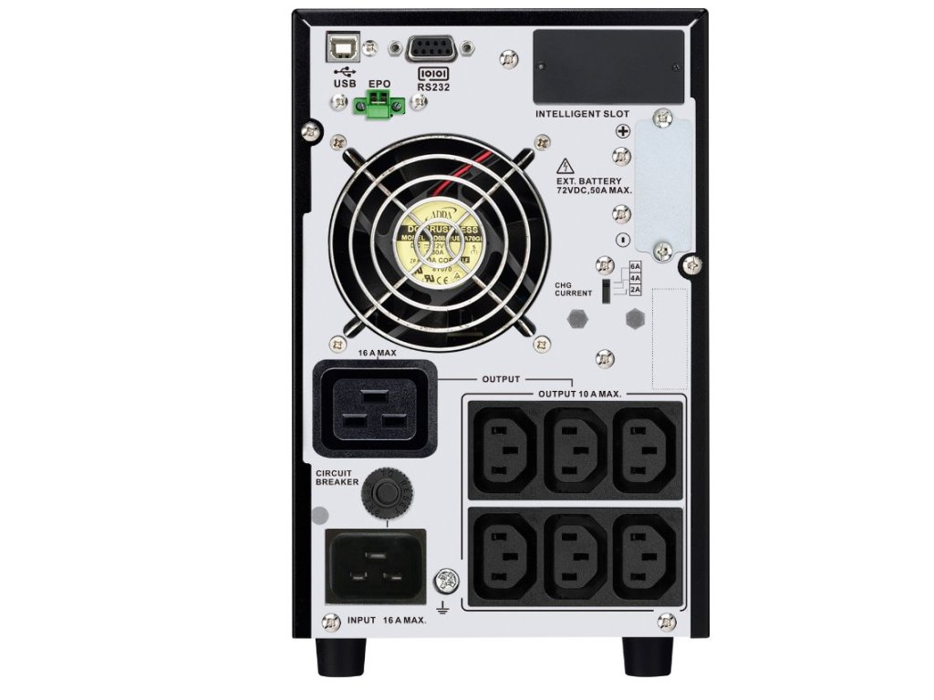 Záložné napájanie APC Easy UPS On-Line 3000 VA je výkonný a spoľahlivý záložný zdroj napájania (UPS), ktorý využíva dvojitú online konverziu na zabezpečenie stabilného napájania a ochrany vašich citlivých zariadení. Tento model je ideálny pre servery, pracovné stanice a iné podnikové zariadenia, ktoré vyžadujú neprerušované napájanie a ochranu pred výpadkami, prepätiami a rušením. Kľúčové vlastnosti: Menovité výstupné napätie: 230 V (nastaviteľné na 220 V alebo 240 V) Menovitý výkon (W): 2700 W Menovitý výkon (VA): 3000 VA Typ batérie: Ollovená batéria (72 V) Predĺžiteľný čas prevádzky: akumulátor (batéria) Sínusová vlna Účinnosť: 90 % pri plnom zaťažení Topológia: Online s dvojitou konverziou Čas prepínania: obvykle 4 ms Pripojiteľnosť a možnosti: Vstupné pripojenie: IEC 60320 C20 Výstupné pripojenie: 6 x IEC 60320 C13, 1 x IEC 60320 C1 Kompatibilita s USB: áno Komunikácia: multifunkčný LCD stavový a ovládací panel Externá batéria: 1 externá batéria a bateriový kábel Fyzické vlastnosti: Rozmery (V x Š x H): 33,6 cm x 42,5 cm x 42,5 cm Hmotnosť: 46,2 kg Farba: čierna (RAL 7510) 1024 Btu/h Bezpečnostné prvky a ochrany: Prepätová ochrana a filtrácia: Rázová energia do 600 J Alarmy: Prúdový výboj: 1: Alarm výpadku napájania, alarm slabej batérie, alarm trvalého preťaženia Bypass: Interný automatický a manuálny bypass Faktor výkyvu: 3:1 Prevádzkové podmienky relatívna vlhkosť: 0-95 % bez kondenzácie Prevádzková nadmorská výška: 0-3000 m Teplota skladovania: -20 až 50 °C Relatívna vlhkosť pri skladovaní: 0-95 % bez kondenzácie Nadmorská výška pre skladovanie: 0-15000 m Ďalšie informácie: Náhradná 3000 VA / 2700 W Certifikáty výrobku: CE, UKCA, TISIDodatočné parametre