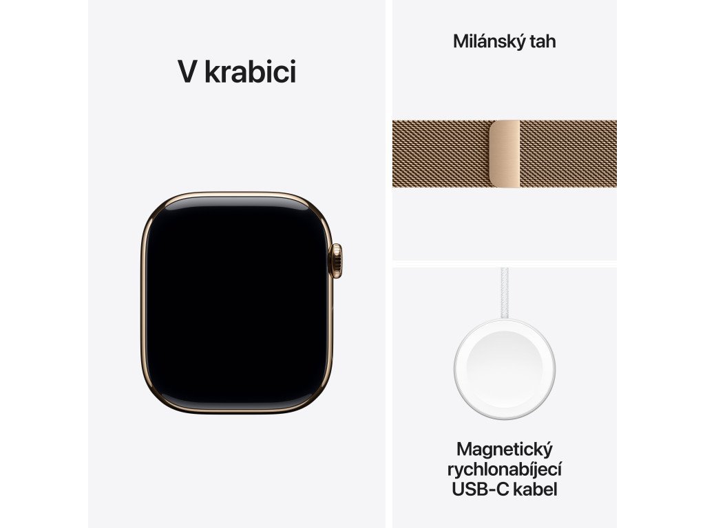 Apple Watch Series 11 GPS + Cellular 46mm zlaté titánové puzdro so zlatou milánskou slučkou - M/L