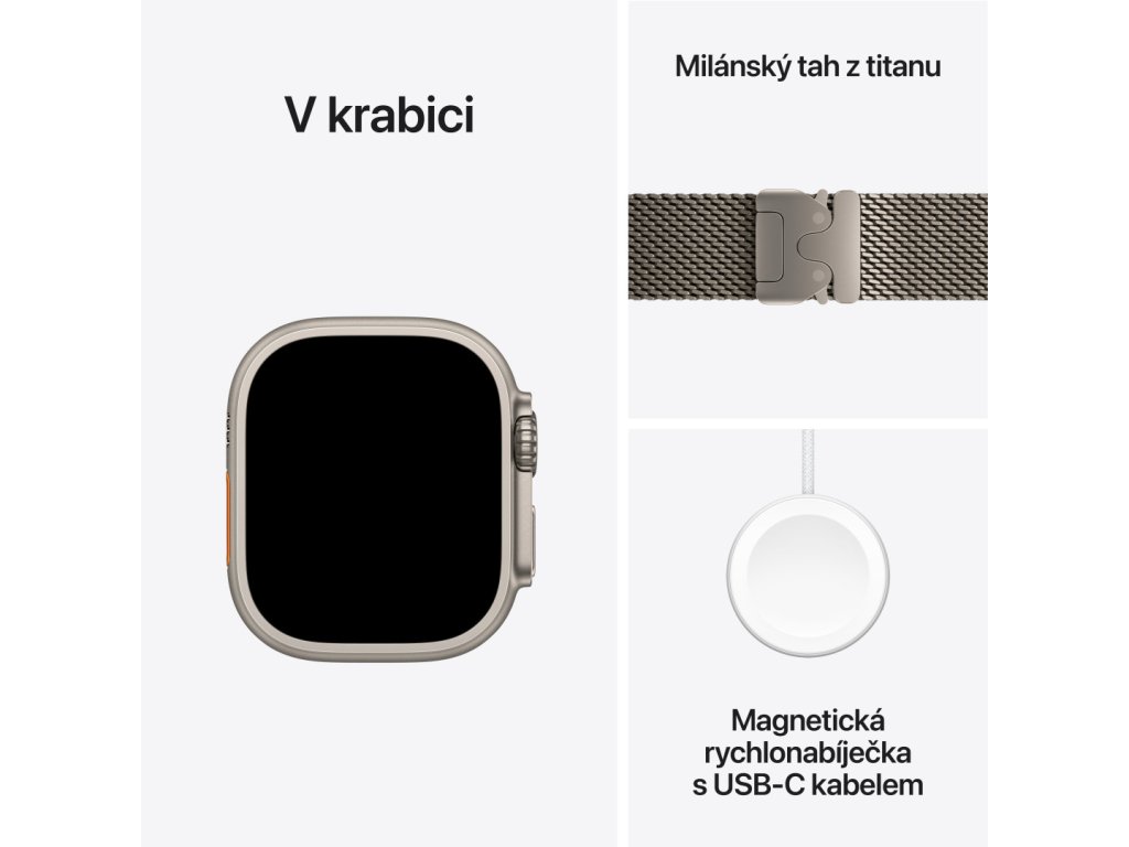 Apple Watch Ultra 2 GPS + Cellular 49 mm puzdro z prírodného titánu s milánskou slučkou z prírodného titánu - L (MX5T3CS/A)