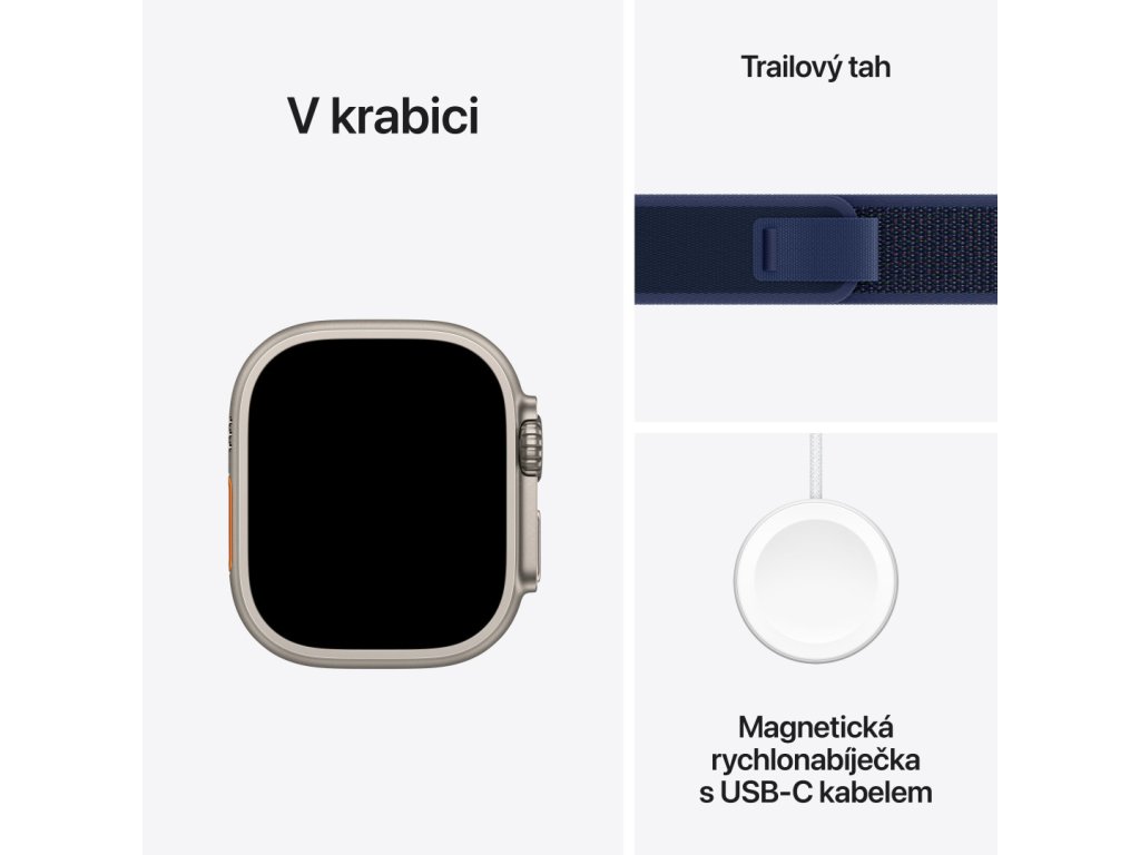 Apple Watch Ultra 2 GPS + Cellular 49 mm puzdro z prírodného titánu s modrou slučkou Trail Loop - M/L (MX4L3CS/A)