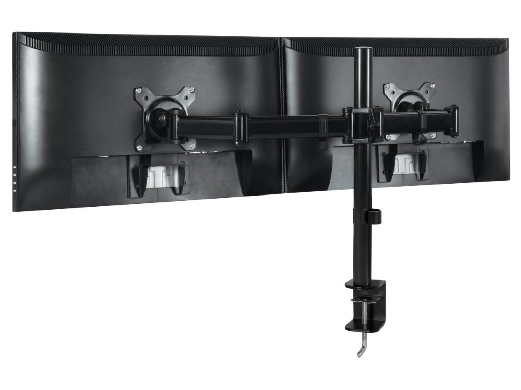 ARCTIC Z2 Basic Nastaviteľný držiak na dva monitory šetrí miesto na stole. Držiak je vhodný pre ploché LCD monitory s uhlopriečkou od 13" do 32" a hmotnosťou do 2 x 8 kg. Umožňuje jednoduché nastavenie optimálnej výšky, sklonu a natočenia monitorov. Ľahko sa pripevňuje pomocou svorky k doske stola. Intuitívny systém správy káblov minimalizuje neriadok. ZÁKLADNÉ ŠPECIFIKÁCIE Veľkosť obrazovky: 13" - 32" Maximálna nosnosť: 2 x 8 kg Rozmery VESA: 75 x 75 mm, 100 x 100 mm Náklon: -45 ° až 90 ° Farba: čiernaDodatočné parametre