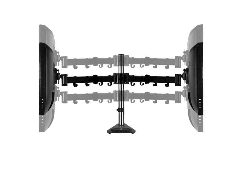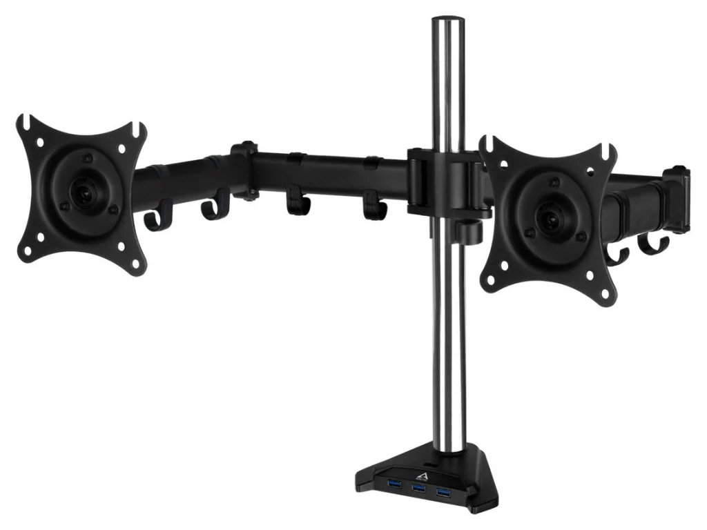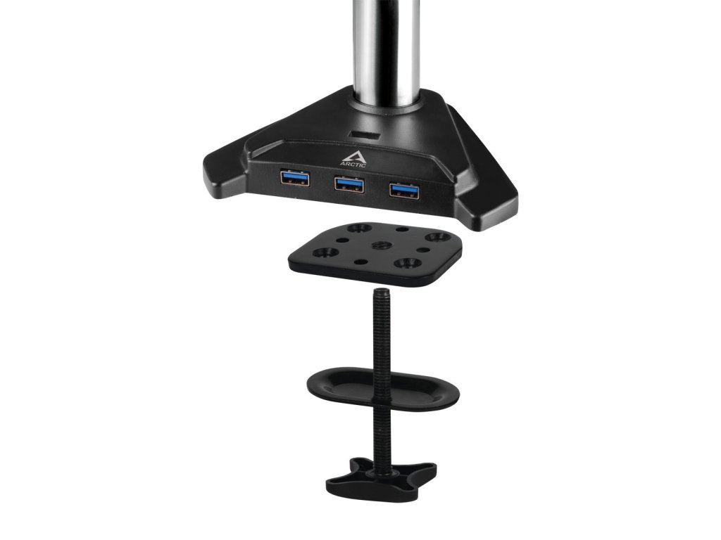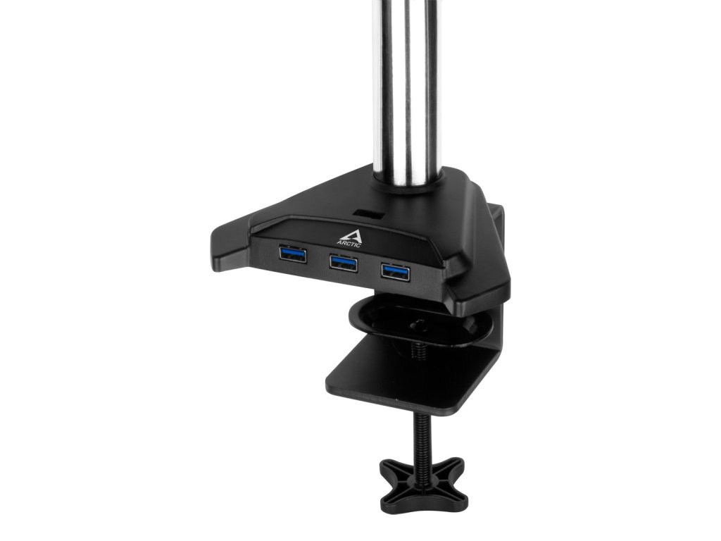 Arctic Z2 Pro Gen 3 je flexibilný držiak monitora s dvoma ramenami a štyrom portovým USB 3.0 hubom navrhnutý tak, aby mohla byť maximálne využitá plocha pracovného stola a LCD monitor neprekážal. Ramená je možné natáčať v troch úrovniach a rozsahu 360 stupňov pre dosiahnutie maximálnej ergonómie. Súčasťou stojana je tiež klipsňa pre káblový manažment. LCD rozmer obrazovky: až 34" (pre štandardné 16:9 LCD) LCD rozmer obrazovky: až 29" (pre štandardné Ultra Wide LCD) VESA: 75 / 100 Nosnosť: 15kg (každé rameno) Naklon: +- 15 stupňov Natočenie: 180 stupňov Rotácia: 360 stupňov Výška stojana 2 440mm USB HUB: 4 x USB3.0 s Micro USb napájaním Dĺžka kábla: 2m Farba: čierna Hmotnosť: 4 kgDodatočné parametre