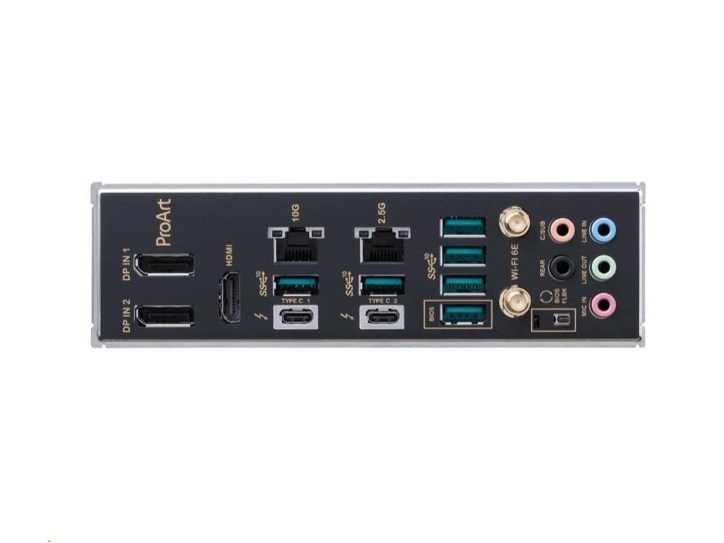 ASUS ProArt Z790-CREATOR WIFI Čipová súprava: Intel® Z790 Rozmerový formát: ATX (305x244mm) 7200(OC)/7000(OC)/6800(OC)/6600(OC)/6400(OC)/6200(OC)/6000(OC)/5800(OC)/5600/5400/5200/5000/5000/4800 Non-EC Intel® Extreme Memory Profile (XMP) OptiMem II Grafické výstupy: 1x DisplayPort 1.4 2x Intel® Thunderbolt™ 4 (USB Type-C®) podporuje video výstupy DisplayPort a Thunderbolt™ Zvuková karta: Realtek S1220A 7.1 Surround Sound High 32-bit/192 kHz Ethernet: 1x Marvell® AQtion 10Gb Ethernet + 1x Intel 2,5Gb Ethernet WLAN + Bluetooth: 2x2 Wi-Fi 6E (802.11 a/b/g/n/ac/ax) + Bluetooth® v5.3 Rozširujúce sloty: alebo x8/x8) 1x PCIe 4.0 x16 (podporuje režim x4) Radič RAID: technológia Intel® Rapid Storage podporuje NVMe RAID 0/1/5, SATA RAID 0/1/5/10 Priestor na ukladanie dát: Podporuje celkom 4 sloty M.2 a 8 portov SATA 6 2242/2260/2280/22110 (podporuje režim PCIe 4.0 x4) 1x M.2_2 (Key M), typ 2242/2260/2280 (podporuje režim PCIe 4.0 x4) 1x M.2_3 (Key M), typ 22 (podporuje režim PCIe 4.0 x4) 1x M.2_4 (Key M), typ 2242/2260/2280 (podporuje režim PCIe 4.0 x4 a SATA) 8x port SATA 6 Gb/s USB: Zadné USB (spolu 8 portov) 2x Thundert 5V/3A, 15W 6x USB 3.2 Gen 2 (6x typ A) Predné USB (spolu 7 portov) 1x konektor USB 3.2 Gen 2x2 - podpora USB-C® s 60W PD 3.0/QC 4 + 1x konektor USB 3.2 Gen 1 - podpora ďalších 2 portov 2 ďalších portov USB 2.0 Porty na zadnom paneli: 2x Thunderbolt™ 4 USB Type-C® 6x USB 3.2 Gen 2 (6x typ A) 2x DisplayPort (len vstup) 1x HDMI 1 modul Wi-Fi ASUS 1x Marvell AQtion Interné porty: Ventilátor a chladenie 1x 4-kolíkový konektor ventilátora CPU 1x 4-kolíkový konektor ventilátora CPU OPT 1x 4-kolíkový header AIO čerpadla 5x 4-kolíkové záhlavie ventilátorov šasi Napájanie 1x 24-pinový konektor hlavného napájania 1x 8-pinový konektor +12V 1x 6-pinový napájací konektor +12V Súvisiace s úložiskom 4x slot M.2 (kľúč M) 8x port SATA 6 Gb/s USB 1x konektor USB 3.2 Gen 2x2 - podpora USB-C® s 60W PD 3.0/QC 4+ 1x konektor Gen 1 2x USB 2.0 header - podpora 4 ďalších portov USB 2.0 Ďalší 3x adresovateľný header Gen 2 1x Aura RGB header 1x Clear CMOS header 1x záhlavie portu COM 1x prepojka CPU Over Voltage 1x hlavička zvuku na prednom paneli (AAFP) 1x slot (14-1pin) 1x 20-3pinový header systémového panela s funkciou Chassis intrude 1x hlavička snímača teploty BIOS: 256 MBDodatočné parametre