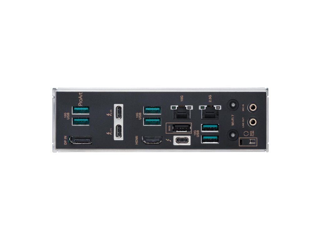 ASUS ProArt Z890-Creator-Wifi Čipová súprava: Intel Z890 Rozmerový formát: ATX (305x244mm) Podpora procesorov Intel Core Ultra (séria 2), technológie Intel Turbo Boost 2.0 a technológie Intel Turbo Boost Max 3.0 Socket procesora: LGA1851. Podporuje až 9066+MT/s (OC), bez-ECC, Un-buffered a Clocked Unbuffered DIMM (CUDIMM) Bez vyrovnávacej pamäte Dvojkanálová architektúra pamäte Podpora pamäťových modulov Intel® Extreme Memory Profile (XMP) ASUS Enhanced Memory Profile III (AEMP 1 x port HDMI ™ 2 x porty Intel ® Thunderbolt ™ 5 (USB typu C ®) podporuje výstupy DisplayPort a Thunderbolt ™ 1 x port Intel ® Thunderbolt ™ 4 (USB Type-C ®) podporuje výstupy DisplayPort a Thunderbolt ™. Zvuková karta: Realtek ALC1220P 7.1 Surround Sound High Definition Audio CODE, podpora prehrávania až 32 bitov/192 kHz, funkcia snímania impedancie pre predné a zadné výstupy sluchádiel, interný zosilňovač zvuku na zvýšenie najvyššej kvality zvuku pre sluchátka a reproduktory C® Thunderbolt™ 5 1 x port USB typu C® Thunderbolt™ 4 6 x porty USB 10 Gb/s (6 x typ A) 1 x port USB 2.0 (1 x typ A) 1 x DisplayPort (pouze vstup) 1 x port HDMI™ 1 x modul Wi-Fi1 x port Marvell® AQ 2,5 Gb Ethernet 2 x pozlátené audio konektory 1 x tlačidlo BIOS FlashBack™ Interné vstupy a výstupy: Ventilátory a chladenie 1 x 4-pinový konektor ventilátora CPU OPT 1 x 4-pinový header pre čerpadlo AIO 5 x 4-pinové záhlavie ventilátorov šasi Napájanie 1 x 24- pre napájanie CPU Úložisko 5 x sloty M.2 (kľúč M) 4 x porty SATA 6 Gb/s USB 1 x konektor USB 20 Gb/s (podporuje USB Type-C®) 1 x konektor USB 5 Gb/s, podporuje 2 ďalšie porty USB 5 Gb/s 1 x záhlavie USB 2.0, podporuje adresovateľné hlavičky Gen2 1 x tlačidlo Clear CMOS 1 x hlavička portu COM 1 x prepätový spínač CPU 1 x záhlavie na detekciu narušenia šasi 1 x záhlavie pre zvuk na prednom paneli (F_AUDIO) 1 x záhlavie SPI TPM (14-1 pin) 1 x 10- pre Vlastnosti: - Vstavaný modul pre tepelné napájanie, - Vstavaný modul pre tepelné napájanie: ASUS 5X OCHRANA III / DIGI + VRM (- Digitálny dizajn napájania s DrMOS) ESD ochrana LANGuard Prepätová ochrana SafeSlot Oceľový zadný I/O panel ASUS Q-Design M. Q-Slide Q-Release Slim (s PCIe SafeSlot) Q-Antenna Q-Connector Q-Dashboard Q-DIMM Q-LED (CPU [červená], DRAM [žltá], VGA [biela], bootovacie zariadenie [žltozelená]) Tepelné riešenie ASUS Chladič M.2 so zadnou doskou DIY Tlačidlo BIOS FlashBack™ LED dióda BIOS FlashBack™ Hlavičky skrinky Tlačidlo Clear CMOS Ochranný kryt pákového mechanizmu zásuvky CPU ProCool II Predinštalovaný I/O štít SafeDIMM Aura Sync Adresovateľné hlavičky Gen2 https://www.asus.com/motherboards-components/motherboards/proart/proart-z890-creator-wifi/Dodatočné parametre