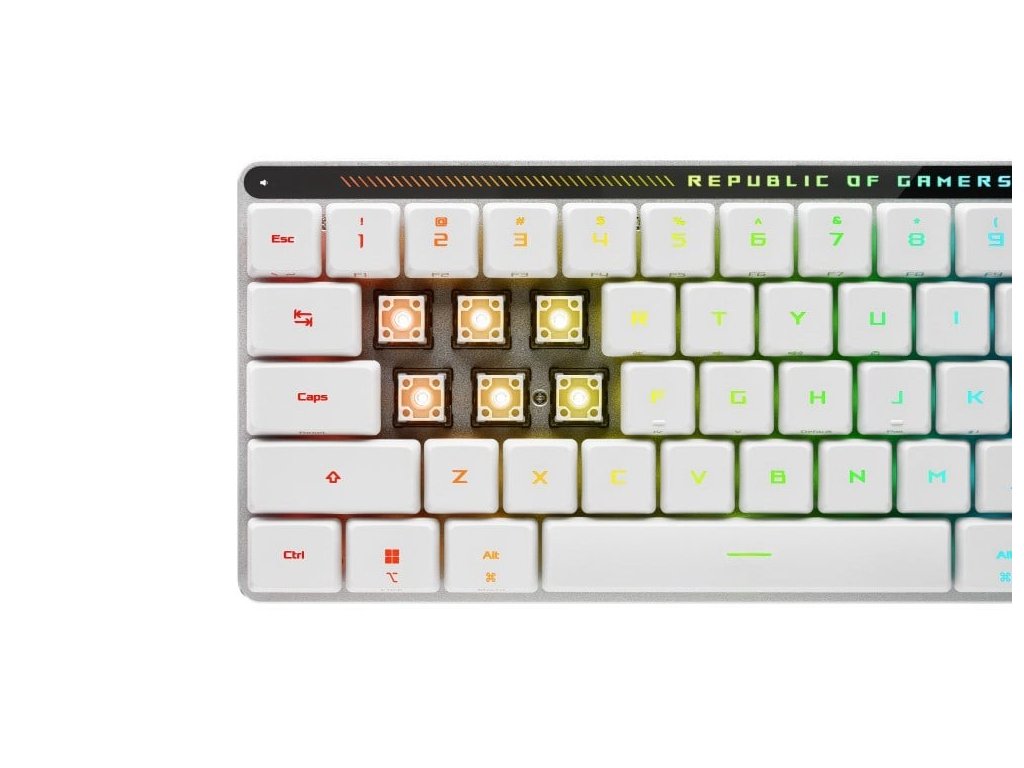ROG Falchion RX Low Profile 65% kompaktná bezdrôtová herná klávesnica s nízkoprofilovými optickými spínačmi ROG RX, trojrežimovým pripojením s bezdrôtovou technológiou ROG SpeedNova a prijímačom Omni, ochranným krytom, integrovanou silikónovou penou absorbujúcou nárazy Kompaktný a tenký dizajn: 65% klávesnica v 60% rámčeku s profilom 26,5 mm majstrovsky zahŕňa klávesy so šípkami a navigačné klávesy. režimoch: Pripojenie cez Bluetooth® (až tri zariadenia súčasne), 2,4 GHz s bezdrátovou technológiou ROG SpeedNova alebo káblové USB Prijímač ROG Omni: Bezdrôtové pripojenie k viacerým podporovaným zariadeniam prostredníctvom jediného prijímača Intuitívne ovládanie: Prehrávanie/pozastavenie médií a nastavenie hlasitosti Vylepšené možnosti písania: Dve vrstvy integrovanej silikónovej peny eliminujú ozvenu a drnčanie spínačov pre skvelú akustiku pri písaní Ochranný kryt: Vychutnajte si ochranu na cestách a ochranu pred prachom Podpora MacOS: Jednoduché prepínanie medzi režimami Windows a MacOSDodatočné parametre