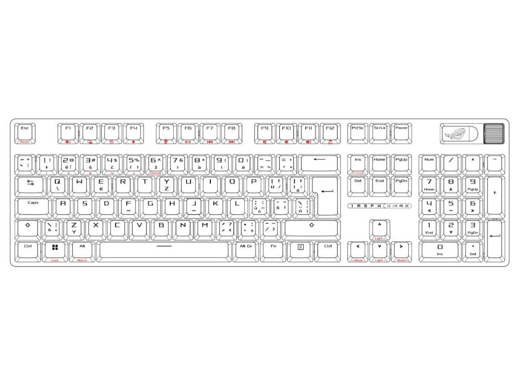 Herná klávesnica ROG Strix Scope II X s mechanickými spínačmi ROG NX V2 s výmenou za chodu, penovým tlumením zvuku, dvojitými klávesmi PBT alebo ABS s UV povlakom, streamovacími klávesmi, multifunkčnými ovládacími prvkami, tromi uhlami sklonu a opierkou zápä. Mechanické spínače ROG NX Snow s ovládaním V2: podporujú viacero profilov klávesov a poskytujú jemnejšiu akustiku a plynulejší pocit pri písaní. Klávesové skratky: F1-F5 sú predprogramované ako klávesové zkratky pre Xbox Game Bar pohlcujúca pena: Integrovaná pena pohlcuje zvuky a ozvenu pre lepšiu akustiku PBT/ABS s UV povlakom: Odolné dvojité klávesy ROG PBT alebo ABS s UV povlakom ponúkajú prvotriedne pocit a odolnosť voči lesku Jedinečný mezerník a tromi RGB LED diódami na spodnej strane Ergonomický dizajn: tri polohy sklonu a odnímateľná opierka zápästiaDodatočné parametre