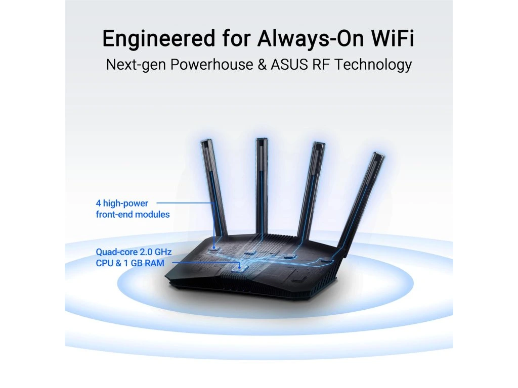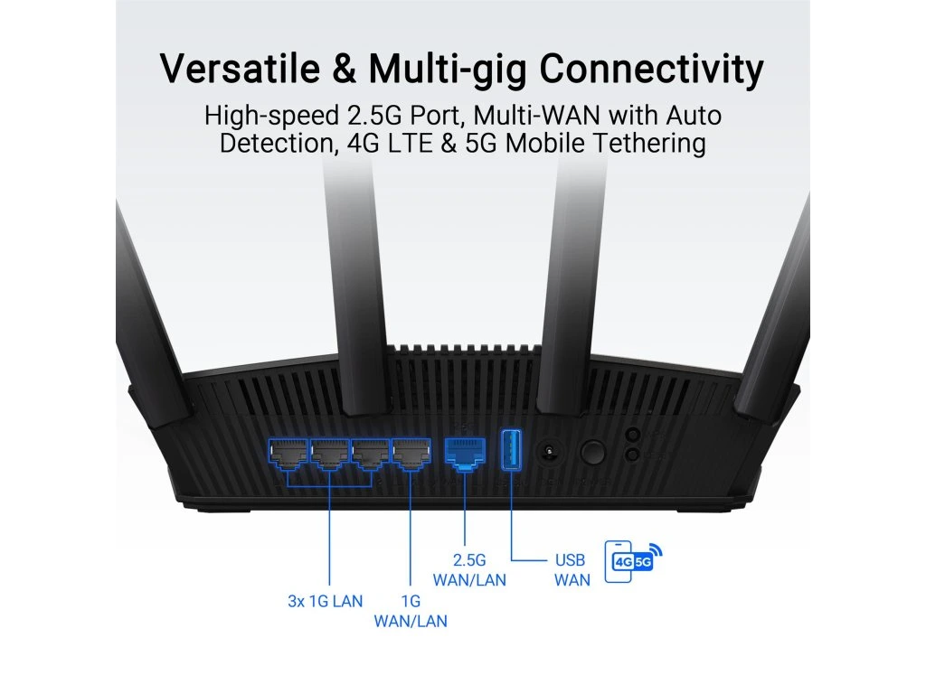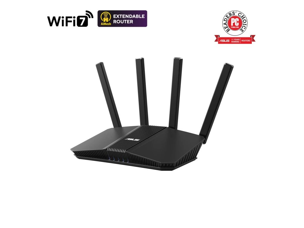 Rozšíriteľný WiFi router 7 AiMesh, 4K-QAM, MLO, detekcia AI 2,5 G WAN / LAN port, štyri 1G porty, zabezpečenie siete na komerčnej úrovni, rodičovská kontrola, sieť IoT, dětská sieť, VPN Ultra rýchle WiFi 7 - dvojpásmový rozšíriteľný rou3 Wi0 . Mb/s, pričom 4096-QAM zvyšuje rýchlosť jedného pásma 1,2-násobne Vysokovýkonný procesor - Vybavený najnovším štvorjadrovým procesorom Broadcom s frekvenciou 2,0 GHz podporuje až 20 000 DMIPS výpočtového výkonu, bez problémov zvláda rôzne softwarové a hardvérové funkcie. Uvoľnenie funkcie Multi-link Operation (MLO) pre mimoriadne plynulé pripojenie - Pripojenie k viacerým pásmam súčasne na zabezpečenie stabilného pripojenia k internetu a efektívneho prenosu dát Detekcia Al na vstupe WAN - Flexibilné vstupy WAN s 2,5 Gb portom WAN/LAN a 1 Gb portom WAN/LAN. Dokáže automaticky detekovať vstup WAN a sám sa nakonfigurovať pre jednoduchší proces nastavenia. Bezproblémová rozšíriteľná sieť AiMesh - Rozšíriteľné smerovače AiMesh umožňujú bezproblémový roaming v celej domácnosti s bohatými a pokročilými funkciami. Zabezpečenie siete na komerčnej úrovni - Zabezpečenie siete AiProtection Pro na komerčnej úrovni s technológiou Trend Micro™, bezpečnostné skenovanie jedným kliknutím a bezpečné prehliadanie. Inteligentná domácnosť bez starostí s WiFi 7 Vylepšite svoju inteligentnú domácnosť bleskovo rýchlou dvojpásmovou sieťou WiFi 7 s rýchlosťou až 3600 Mb/sa väčším dosahom vďaka technológii Smart AiMesh poháňanej umelou inteligenciou. Vďaka novej generácii zabezpečenia siete ASUS a súprave pokročilých sieťových technológií, ako je napríklad IoT Network, chráni RT-BE58U vašu sieť od začiatku do konca 24 hodín denne. WiFi 7 podporuje AiMesh RT-BE58U využíva výkon WiFi 7 MLO na technológii AiMesh novej generácie, ktorá poskytuje širšie pokrytie, stabilnejšiu a bezpečnejšiu sieť a bohaté funkcie – to všetko pod jedným názvom siete pre celú vašu inteligentnú domácnosť.Dodatočné parametre