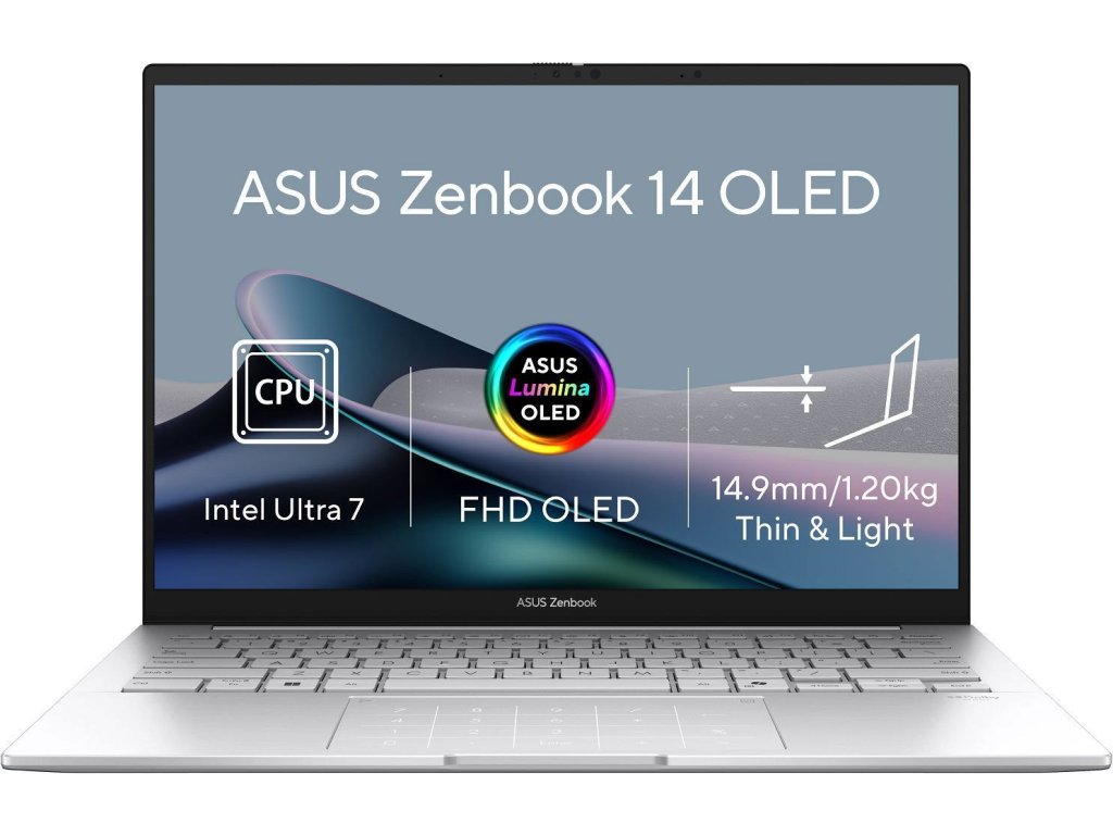 ASUS Zenbook 14 (UX3405CA-OLED382X) Kláves kopilota Vojenský štandard MIL-STD 810H príslušenstvo: puzdro, stylus (podpora ASUS Pen SA203H-MPP2.0) Operačný systém: Windows® 11 Home Procesor: Intel Core Ultra 7 25 2LPE, 16 vlákien, jadro P 2,0/5,1 GHz, jadro E 1,5/4,4 GHz, jadro LPE 0,7/2,5 GHz, 24 MB cache) Neurónový procesor: Intel® AI Boost Pamäť: 32 GB LPDDR5X na základnej doske Počet s Maximálna veľkosť: 32 GB Pevný disk: 1 TB M.2 NVMe™ PCIe® 4.0 SSD Rozširujúce sloty pre pevný disk: 1x M.2 2280 PCIe 4.0x4 Optická jednotka: nie Čítačka pamäťových kariet: nie Displej: 14" WUXGAový (192) lesklý, 60 Hz, 0,2 ms, 400 nitov, DCI-P3 100%, VESA CERTIFIED Display HDR True Black 500 Grafická karta: Intel Arc 140T Zvuk: technológia Smart Amp, reproduktory Harman/Kardon; klávesnica: áno Numerická klávesnica: nie Čítačka otlačkov prstov: nie Pero: ASUS Pen SA203H-MPP2.0 Síť: nie Bezdrôtová komunikácia: WLAN + Bluetooth (Wi-Fi 7, 802.11be, trojpásmový, 22 + Bluetooth® 5.4) USB: 1x USB 2 Gb/s) 2x Thunderbolt™ 4 s podporou DP/napájania (rýchlosť prenosu dát až 40 Gb/s) Ďalšie porty: 1x HDMI 2.1 TMDS 1x kombinovaný konektor pre sluchátka/mikrofón (3,5 mm) Zabezpečenie: Trusted Platform Module (firmware TPM) 75Wh, 2S2P, 4-článková Li-ion Napájanie: 65W AC adaptér, USB-C Farba: striebra (Foggy Silver) Materiál: hliník Rozmery: 312,4x220,1x14,9 mm Hmotnosť: približne 1,28 kg Záruka: 2 rokyDodatočné parametre