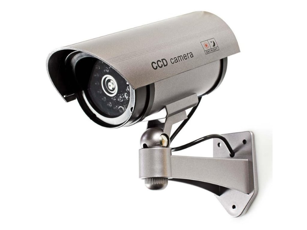 Atrapa bezpečnostnej kamery NEDIS s infračervenou LED diódou/ guľôčková/ IP44/ vonkajšia/ sivá