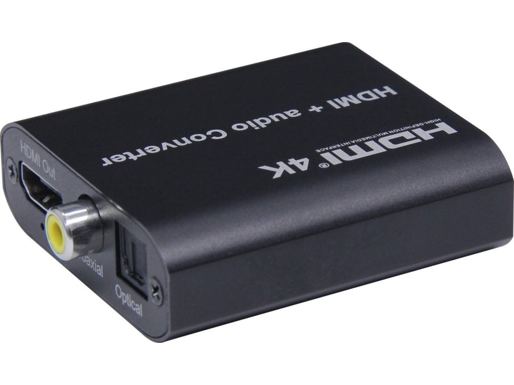 PremiumCord HDMI 4K Audio extraktor s oddelením zvuku na stereo jack, SPDIF Toslink, RCA Umožňuje oddeliť zvuk zo vstupu HDMI na analógový/digitálny zvuk, ktorý sa vyvedie samostatne do konektorov: stereo jack, digitálny zvuk RCA CINCH alebo digitálny optický zvuk prostredníctvom signálu HDMI reproduktora, priestorového systému, zosilňovača alebo sluchadiel - týmto spôsobom vždy vyvediete zvukový signál do vybraného zariadenia v optimálnej kvalite. Obraz sa prostredníctvom výstupu HDMI vyvádza v brilantnom rozlišení 4K; môžete sem pripojiť televízor, monitor alebo projekt. Ideálne pre vaše domáce kino! Zvuk je možné vyviesť v stereo formáte cez 3,5 mm jack alebo v 5.1-kanálovej technológii cez Toslink™ (SPDIF/optický). Integrovaný zosilňovač signálu HDMI® tiež vylepšuje videosignál (Full HD až na 15 m, 4K až na 10 m). - Rozdelenie signálu zo vstupu HDMI na video (HDMI) a zvuk (analógové stereo a digitálny S/PDIF 5.1). - Zosilňuje vstupný signál HDMI až na 15 m (1080p) alebo 10 m (4K) pri použití kvalitného kábla AWG26 - Zosilňuje výstupný signál HDMI až na 15 m (1080p) alebo 10 m (4K) pri použití kvalitného kábla AWG26 - Výstupný zvukový signál HDMI alebo digitálny optický konektor TOSLINK (SPDIF) - Podporuje optický/koaxiálny digitálny zvuk a analogový stereo zvuk - 5.1CH - zvukový signál je len na výstupe S/PDIF - Podporované zvukové formáty: DTS-HD/Dolby-trueHD/DTS/Dolby-AC3/DSD - Na stereo 1920x1080 (1080p) Full HD a 4K (4096x2160 pri 30 Hz) - Podpora 3D videa - Podpora HDMI 1.4 a HDCP 1.4 - Podpora CEC ( Consumer Electronics Control ) - Prepínač DIP na správu EDID - Indikácia stavu LED - Napájanie z portu USB samica Výstup: 1x HDMI samica 1x digitálny optický zvuk Toslink 1x RCA cinch - koaxiálny digitálny zvuk 1x stereo jack - analógový stereo zvukDodatočné parametre