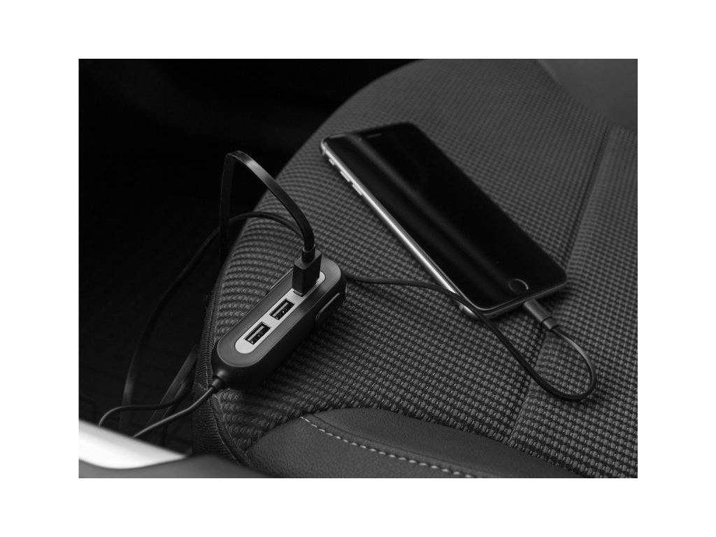 AVACOM CarHUB nabíjačka do auta 5x USB výstup, čierna USB nabíjačka do auta s 5 USB výstupmi a maximálnym výkonom až 54W. AVACOM CarHUB nabije 5 prístrojov súčasne. Má dve časti, ktoré sú spojené 1,5 m dlhým káblom. Prvú časť s dvoma USB výstupmi je možné zapojiť do zásuvky autozapaľovača. Ďalšie tri USB výstupy sa dajú pomocou praktického klipu pripevniť za zadné sedadlo, čo umožní nabíjanie všetkým cestujúcim v aute. Vysoký výstupný prúd nabíjačky (2,4 A na port a 10,8 A celkovo) a výkon 54 W zaručujú bezproblémové nabíjanie náročných zariadení - smartfónov, tabletov alebo navigácií. CarHUB je vybavený Smart Chipom, teda inteligentnou elektronikou, ktorá rozpozná pripojené zariadenie a automaticky zvolí vhodný nabíjací režim. Nabíjačka AVACOM CarHUB je vhodná pre zariadenia značky Apple (iPad/iPhone/iPod), aj pre smartfóny so systémami Android, Windows Phone a ďalšie, pre tablety, Power Banky, fotoaparáty, navigácia atď. Vďaka vstupu 12-24V ju možno použiť v osobných aj nákladných automobiloch. Výstup: 5x USB maximálne zaťaženie jedného USB portu 2,4A maximálne celkové zaťaženie 10,8A/54W Dĺžka kábla: 1,5 m Rozmer produktu (DxŠxV): 7 x 2 x 1,5 cm + 9 x 3 x 1,8 cm Rozmer obalu (DxŠxV): 18 x 11 140 gDodatočné parametre