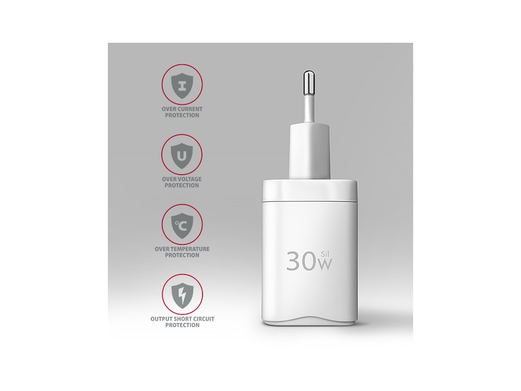 Kompaktná sieťová nabíjačka USB AXAGON ACU-PD30W Sil na rýchle nabíjanie mobilných zariadení. S maximálnym výkonom 30 W nabíjačka nabíja telefóny, tablety a iné mobilné zariadenia najvyššou možnou rýchlosťou. Adaptér ponúka oboustranný konektor USB-C. Kompaktné rozmery a vysoký výkon sú výsledkom použitej novej technológie Sil. Super Silicon využíva pokročilé materiály na báze křemíka. Vďaka tomu nabíjačka dosahuje menšie rozmery a zároveň poskytuje bezpečné, stabilné a rýchle nabíjanie. Účinnosť je tak identická s technológiou GaN pri zachovaní prijateľnej ceny. Nabíjačka je vybavená výstupom Power Delivery 3.0/Quick Charge 4+ USB typu C, ktorý umožňuje rýchle nabíjanie smartfónov a tabletov s výkonom až 30 W. Nabíjačka podporuje 20W PD nabíjanie pre iPhone 12, 13, 14 a 15 a ponúka aj 27W PD nabíjanie Pro Max 13. Okrem toho podporuje 25W SFC nabíjanie pre Samsung Galaxy S20 – S24, Note a Z Fold series a ponúka aj 30W SFC nabíjanie pre Samsung Galaxy S20 – S24 Ultra, Tab S7 + – S9 +, Tab S8 – S9 Ultra. Adaptér je kompatibilný aj s ďalšími štandardmi rýchleho nabíjania telefónov, ako sú Apple iPhone, iPad, Samsung, Huawei, Honor, Xiaomi. Pokročilý systém ochrany na výstupe nabíjacieho adaptéra chráni nabíjané zariadenie pred poškodením. Funkcia nabíjačky taktiež zabezpečuje rozpoznanie nabíjaného zariadenia a výber optimálnej rýchlosti a priebehu nabíjania. Telo napájacieho adaptéra má príjemný tvar a kompaktné rozmery. V porovnaní s bežnými nabíjacími adaptérmi rovnakých parametrov je veľkosť nabíjačky až o tretinu menšia. Kombinácia malých rozmerov dosiahnutých technológiou Síl, širokého rozsahu vstupného napätia a univerzálnych možností výstupu robí z nabíjačky ideálneho pomocníka na cesty. Vstup: - Vstupné napätie striedavého prúdu 100 V - 240 V / 1 A / 50 - 60 Hz (funkcia WIV), podporuje viacero národných noriem napájania - dvojkolíková euro zástrčka - integrovaná v tele nabíjačky Výstup: - USB-C port PD (tablety, 3V, 5A, 3A, max. 12 V/2,5 A, 15 V/2 A, 20 V/1,5 A, PPS: 3-11 V/3 A, 3-16 V/2 A - Technológia nabíjania: PD 3.0, PD 2.0, PPS, QC4+, QC 3.0, QC 2.0, SFC. Maximálny výkon: - Maximálny výkon 30 W - Maximálny preud 3A Podporované technológie nabíjania: - Štandardné nabíjanie pre všetky podporované zariadenia 5V a nabíjanie Apple iPhone 5, 6, SE, 7. - SMART - nabíjanie 5V/3A max, Quick Charge 1.0, USB Battery Charging 1. (iPad). - FCP - rýchle nabíjanie pomocou protokolu Huawei Fast Charge Protocol. - AFC - rýchle nabíjanie pomocou protokolu Samsung Adaptive Fast Charging Protocol. - SFC - rýchle nabíjanie pomocou protokolu Samsung Super Fast Charging Protocol. - QC - rýchle nabíjanie pomocou protokolu Qualcomm Quick Charge 2.0, Quick Charge 3.0 a Quick Charge 4+. - PPS - rýchle nabíjanie pomocou protokolu Programmable Power Supply (súčasť USB PD 3.0 a QC4+). - PD - rýchle nabíjanie pomocou protokolu USB Power Delivery 2.0 a Power Delivery 3.0. Príklady podporovaných telefónov, tabletov a ultrabookov: - SFC - rýchle nabíjanie (až 25 W) zariadení Samsung Galaxy S20, S21, S22, S23, S24, Poznámka 10, 20, Z Fold 2, 3, 4. - SFC - rýchle nabíjanie (až 30 W) zariadení Samsung Galaxy Ultra, Tab S7 +, Tab S8 +, Tab S9 +, Tab S8 Ultra, Tab S9 Ultra. - PD - rýchle nabíjanie telefónov Apple iPhone 8, 8 Plus, X, XS, XS Max, XR, 11, 11 Pro, 11 Pro Max. - PD - rýchle nabíjanie (do 20 W) zariadení Apple iPhone 12, 12 Mini, 12 Pro, 12 Pro Max, 12, 12 Mini, 12 Pro, 12 Pro Max, 13, 13 Mini, 14, 14 Plus, 15, 15 Plus. - PD - rýchle nabíjanie (až 27 W) zariadení Apple iPhone 13 Pro, 13 Pro Max, 14 Pro, 14 Pro Max, 15 Pro, 15 Pro Max. - PD - rýchle nabíjanie (až 30 W) Apple iPad mini, iPad Air, iPad Pro, MacBook Air a ďalších ultrabookov. Nabíjačka podporuje WIV, AIC, CC: - Wide Input Voltage - funkcia širokého rozsahu vstupného napätia, chráni adaptér pred podpätím a prepätím na vstupe a umožňuje používať viacero "národných štandardov napájania". - Automatic Intelligent Communication - funkcia automatického rozpoznania pripojeného zariadenia na výber optimálnych parametrov nabíjania. - Konštantný výstupný proud - funkcia udržiavania konštantného proudu zabraňuje kolísaní výstupného výkonu, táto funkcia zabezpečuje stabilný priebeh nabíjania. Komplexná ochrana výstupu: OCP, OVP, OTP, OSP: - Ochrana pred nadmerným preudom. Výstupná nadprúdová ochrana. - Ochrana proti prepätiu. Ochrana proti prepätiu na výstupe. - Ochrana proti nadmernej teplote. Ochrana proti prehriatiu adaptéra. - Ochrana proti skratu na výstupe. Ochrana proti skratu na výstupe. Ďalšie funkcie: - rozmery tela zdroja 84 x 36 x 32 mm vrátane vidlice, - hmotnosť: 56 g, - materiál: nehorľavý plast. Balenie v kartónovej krabici s otvorom na zavesenie obsahuje: - bielu sieťovú nabíjačku, - viacjazyčný návod SK/DE/DK/ENG/ESP/FIN/FR/GR/HR/HU/IT/NL/PL/PT/RO/SK/SWE/BG/CN/TR/ARA.Dodatočné parametre