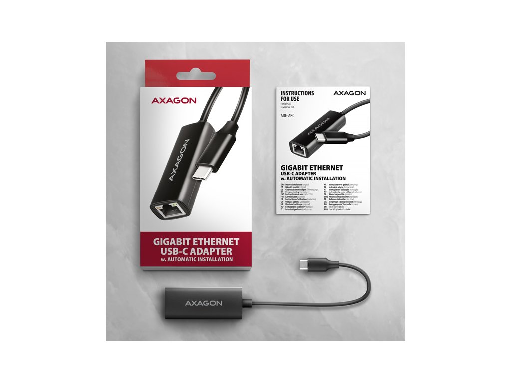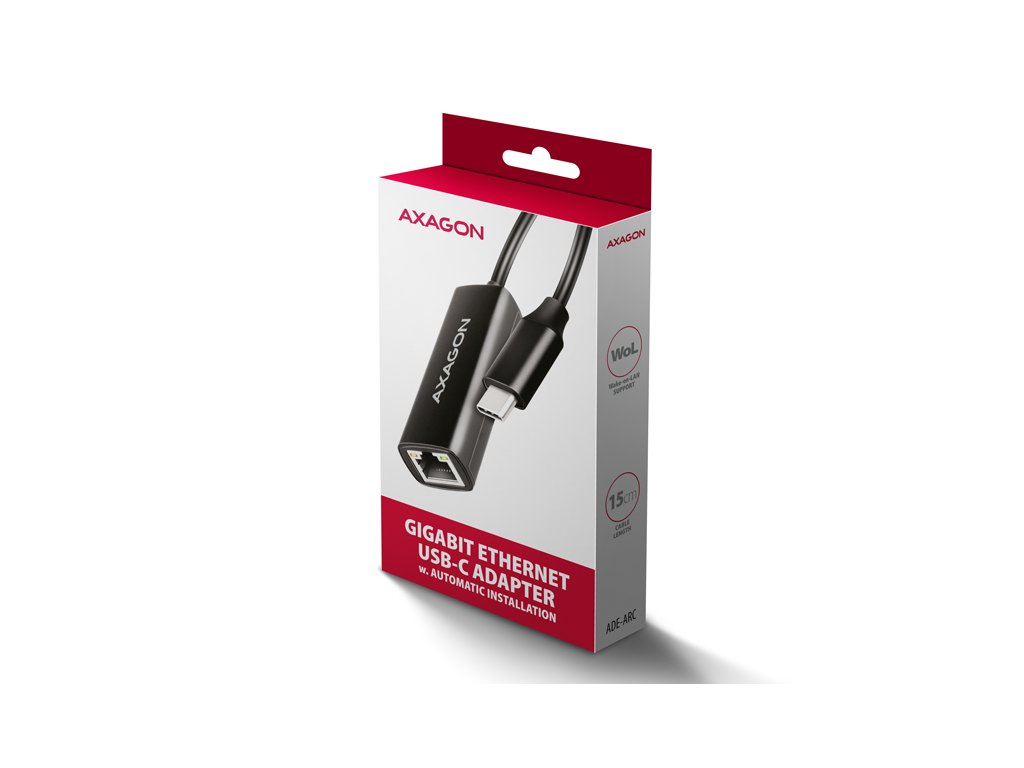 AXAGON ADE-ARC, USB-C 3.2 Gen 1 - Gigabitová sieťová karta, Realtek 8153, automatická inštalácia