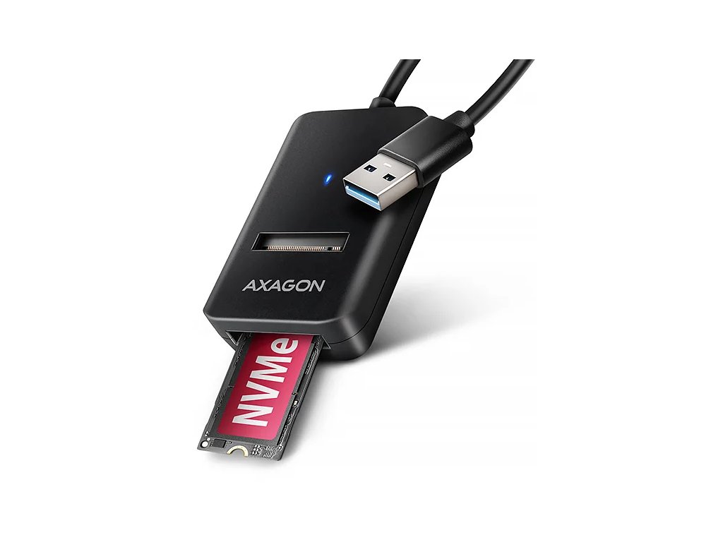 Kompaktný adaptér AXAGON ADM2-AM M.2 s rozhraním USB 10 Gb/s určený na jednoduché používanie diskov M.2 NVMe alebo SATA SSD. Pevný kábel USB-A s dĺžkou 10 cm umožňuje spoľahlivé pripojenie k počítaču. Vďaka rozhraniu USB 3.2 Gen 2 je prenosová rýchlosť až 10 Gb/s. Druhá generacia rýchleho rozhrania USB umožňuje využívať rýchlosť moderných diskov SSD M.2. Univerzálny adaptér M.2 podporuje aj ďalšie moderné funkcie, ako sú UASP, TRIM a umožňuje čítať informácie SMART monitorujúce stav disku. Podpora režimu úspory energie pri nečinnosti. Jedinečnou vlastnosťou je vďaka použitej čipovej súprave možnosť používať disky M.2 NVMe aj SATA. Nemusíte teda premýšľať, pre ktorý typ disku M.2 je adaptér určený, jednoducho číta všetky typy. Ďalšou výhodou adaptéra je možnosť veľmi rýchleho vloženia disku do slotu adaptéra. Tiež sa dajú disky ľahko vymeniť. Tieto vlastnosti robia z adaptéra šikovný a užitočný nástroj na častou prácu s rôznymi typmi diskov. Vďaka tomu je ideálnym nástrojom na testovanie diskov, prenos, zálohovanie a obnovu dát atď. Vďaka malým rozmerom je adaptér vždy pohotový po ruke. Je navrhnutý tak, aby nebránil odvodu tepla z disku, čo predĺžuje jeho životnosť a taktiež zabraňuje spomaleniu disku, takzvanému "Thermal Throttling". Túto redukciu zo slotu USB-A na slot M.2 možno používať s osobnými počítačmi aj notebookmi. Vstup: - USB 10 Gb/s (USB 3.2 Gen 2), konektor USB-A samec. - Kompatibilný s USB 3.2 Gen 1, USB4 a Thunderbolt 3/4. Podpora zariadení: - SSD NVMe M.2, - SATA M.2 SSD, - Určené pre karty formátu M key alebo B+M key, - NGFF 75-pinový slot M key pre disky M.2. Ďalšie funkcie: - Podporuje prenosové rýchlosti 10 000 / 5 000 / 480 Mbit/s. - Podpora pre disky M key alebo B+M key NVMe (PCI-Express) a SATA (AHCI) M.2 SSD bez obmedzenia maximálnej kapacity. - Podpora veľkosti diskov M.2 - bez obmedzenia dĺžky. - Podpora jednostranných a obojstranných diskov M.2 SSD. - Kompatibilný so základnou špecifikáciou PCI Express Revision 3.1a. - V súlade so špecifikáciou NVM Express 1.3. - V súlade so špecifikáciou Serial ATA 3.2 (SATA/600), prenosové rýchlosti do 6 Gb/s (600 MB/s). - Spĺňa špecifikáciu USB Mass Storage Class. - Celková priepustnosť/prenosová rýchlosť adaptéra je určená použitým rozhraním USB (teoreticky až 10 Gbit/s). - Skutočná priepustnosť / prenosová rýchlosť adaptéra približne 1000 MB/s (1 GB/s) je určená limitmi rozhrania USB 3.2 Gen 2. - Podpora BOT (Bulk-Only Transport). - Podpora UASP (USB Attached SCSI) na rýchlejší prenos dať v systéme Windows 8 a novšom. - Podpora TRIM na obmedzenie postupného znižovania výkonu SSD v priebehu času. - Podpora systému SMART (Self-Monitoring, Analysis, and Reporting Technology) na monitorovanie stavu disku. - Podpora spúšťania z disku SSD v externom boxe. - Podpora Hot Plug na pripojenie zariadení za chodu. - Úplná podpora Plug and Play. - Napájanie sběrnice USB až do 900 mA z jedného portu USB je vo všetkých prípadoch dostatočné. - Decentná modrá LED indikujúca pripojenie k portu USB počítača (stály svit) a prenos dát (blikanie). Ďalšie informácie: - Rozmery adaptéra 55 x 37 x 12 mm. - Hmotnosť adaptéra 23 g. - Dĺžka kábla USB-A samec 10 cm. Podporované operačné systémy: - Windows 7/8.1/10/11 a novšie, macOS, iPadOS, iOS, Linux, Chrome OS a Android. - Kompatibilita závisí od aktualizovaného operačného systému a podpory zo strany výrobcu zariadenia. Balenie obsahuje: - Adaptér M.2 s 10 cm pevným káblom, - viacjazyčný manuál SK/DE/DK/ENG/ESP/EST/FIN/FR/GR/HR/HU/IT/LT/LV/NL/NOR/PL/PT/RO/SK/SLO/SRB/SWE/TR/UA/ALB/BG/BOS/CN zavesenie.Dodatočné parametre