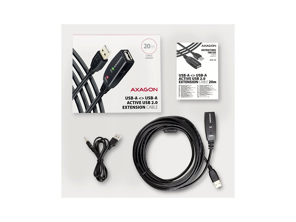AXAGON ADR-220, USB 2.0 A-M -> A-F aktívny predlžovací / opakovací kábel, 20 m