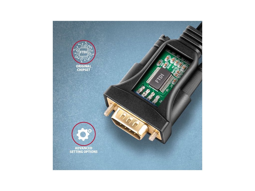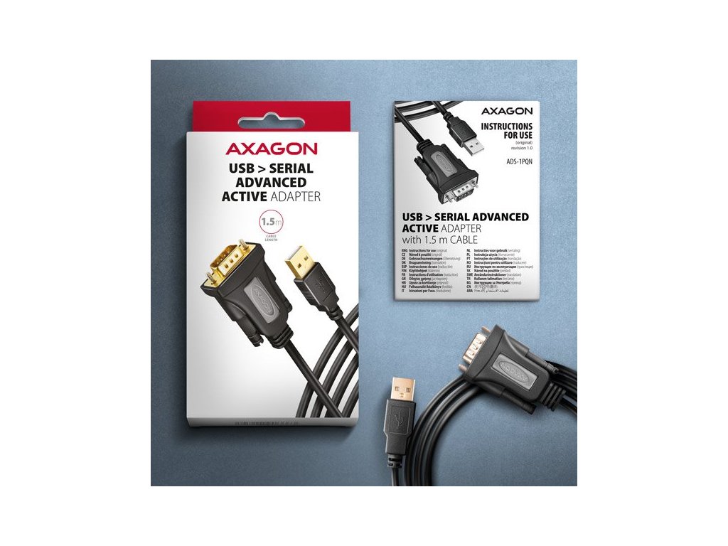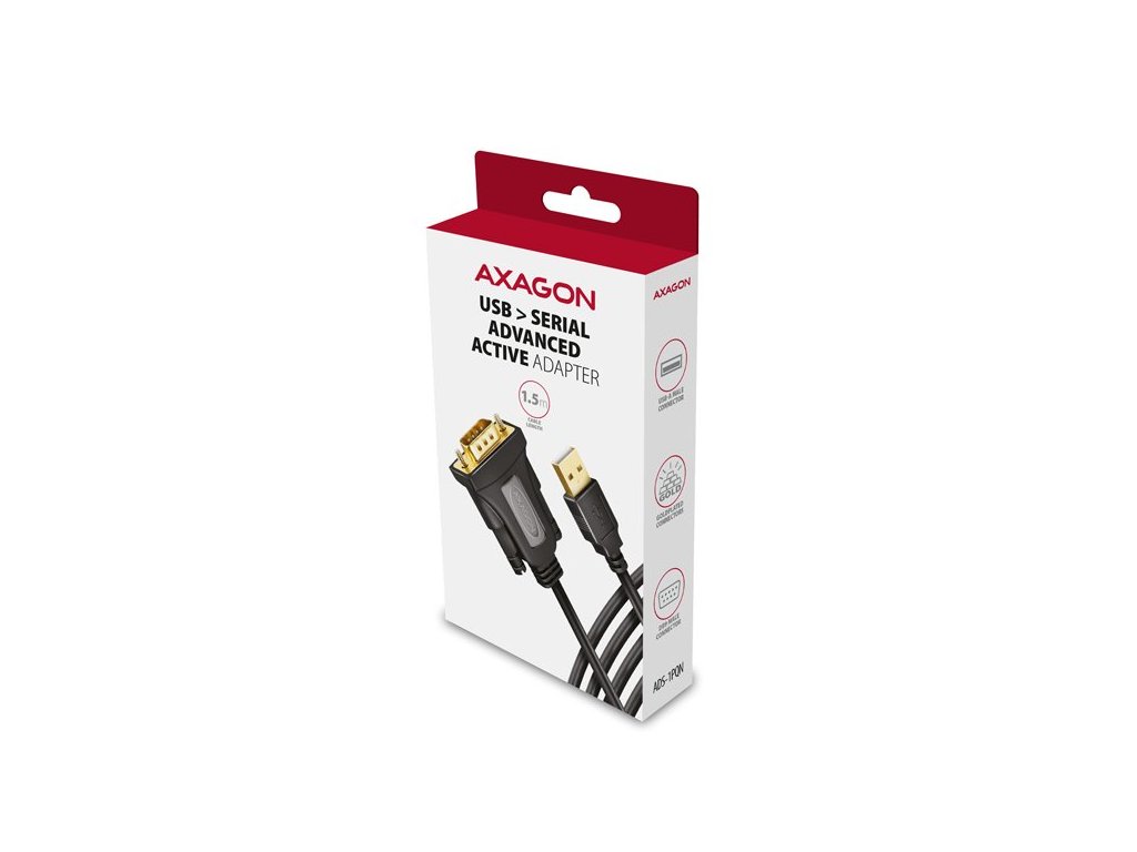 Pokročilý atívny prevodník USB AXAGON ADS-1PQN ľahko rozšíri váš počítač o sériový port RS 232. Vyznačuje sa najvyššou úrovňou kompatibility medzi adaptérmi USB na sériové rozhranie RS232 vďaka použitiu originálneho a oceňovaného čipu od skotskej spoločnosti FTDI. Pevný 1,5 m dlhý kábel USB-A je vhodný na použitie so stolnými aj prenosnými počítačmi. Kabel je vybavený pozlátenými konektormi a kontaktmi, vysoko odolné telo adaptéra je vhodné aj pre priemyselné aplikácie. Dvojité tienenie chráni prenášané signály pred nepříznivým rušením. Prevodník je ideálnym počítačovým príslušenstvom na pripojenie snímačov čárových kódov, POS tlačiarní, skenerov, programátorov mikrokontrolérov, CNC strojov, modemov, aktualizáciu alebo konfiguráciu set-top boxov, bezpečnostných zariadení, prepínačov, rádií a ďalších zariadení. Vstup: - Rozhranie USB 480 Mb/s (USB 2.0), spätne kompatibilné s USB 1.1. - Konektor USB typu A samec umiestnený na pevnom 1,5 m kábli. Výstup: - 1x sériový port RS-232 so samčím konektorom DB9 integrovaným v tele adaptéra. - Prenosová rýchlosť nastaviteľná v rozsahu 300 bit/s - 250 kbit/s. - Kompatibilný s 16C950 UART, spätne kompatibilný s 16C550, 16C650, 16C750 a 16C850. Ďalšie funkcie: - Podpora Plug and Play. - Vyrovnávacia pamäť FIFO na odosielanie 256B a prijímanie 128B. - Konfigurovateľné riadenie toku Xon/Xoff, hardvérové alebo žiadne. - Nastaviteľná dĺžka slova 7 alebo 8 bitov. - Nastaviteľná parita (páreň, lienka, žiadna, značka, medzera), 1 alebo 2 stôp bity. - Nastaviteľné využitie vyrovnávacej pamäte FIFO: príjem (64 - 4096b) a vysílání (64 - 4096b). - Nastaviteľné zpoždenie 1 - 255 ms. - Nastaviteľné prerušenie 0 - 10 000 ms (čítanie) / 0 - 10 000 ms (zápis). - Nastaviteľná pauza nečinnosti 1 - 3600 sekund. - Je možné aktivovať ďalšie funkcie: Serial Enumerator, Serial Printer, Cancel If Power Off, Event On Surprise Removal, Set RTS On Close, Disable Modem Ctrl At Startup, Enable Selective Suspend. - Konfigurovateľné číslo portu COM1 až COM256. - Napájanie adaptéra prostredníctvom napájania zo sběrnice USB - nie je potrebný žiadny ďalší napájací zdroj. - Pozlátené konektory a kontakty zaisťujú spolehlivé pripojenie a zabraňujú oxidácii, čím zabezpečujú dlhú životnosť prevodníka. - Vonkajší priemer kábla 5 mm, dvojité tienenie. - Použitý originálny čip FTDI FT232RL a sériový linkový budič TI TRS213l. - Rozmery tela adaptéra 35 x 56 x 17 mm, dĺžka kábla 1,5 m. - Hmotnosť adaptéra 83 g (včítane kábla). Podporované operačné systémy: - MS Windows XP / Vista / 7 / 8 / 8.1 / 10 / 11 a novšie, Windows Server 2003 / 2008 / 2012 / 2016 / 2019 / 2022 a novšie (podporované všetky 32- a 64-bitové verzie. Linux s jadrom 2.6.xa novějším, Android väčšina verzií. - Poznámka: Ovládače sú súčasťou podporovaných operačných systémov a nainštalujú sa automaticky. Balené v kartónovej krabici s otvorom na zavesenie a obsahuje: - USB - sériový adaptér s 1,5 m pevným káblom USB - viacjazyčný manuál SK/DE/DK/ENG/ESP/FIN/FR/GR/HR/HU/IT/NL/PL/PT/RO/RU/SK/SWE/BG/CN/TR/ARA.Dodatočné parametre