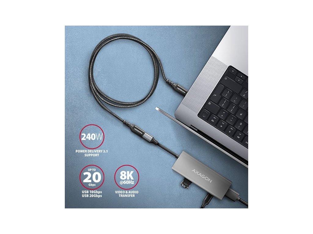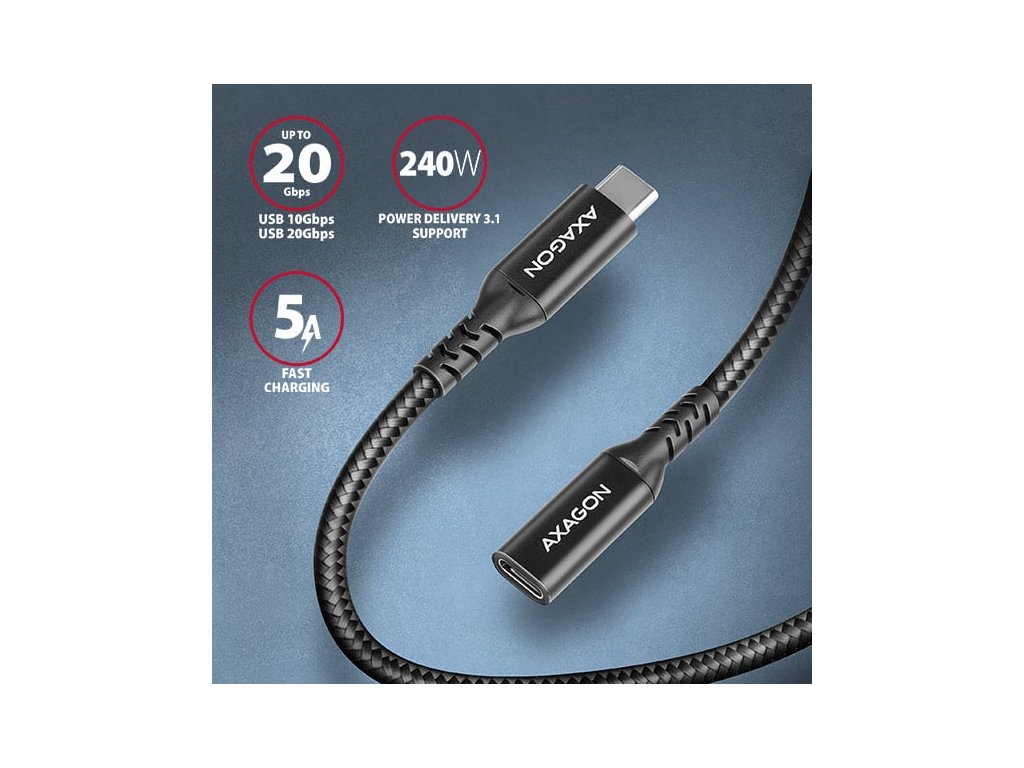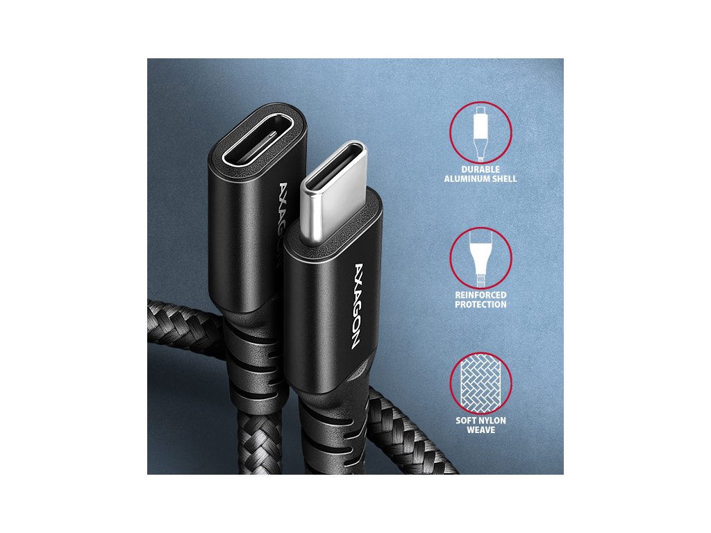 AXAGON BUCM32-CF10AB predlžovací kábel USB-C (M) <-> USB-C (F), 1m, USB 20Gbps, PD 240W, ALU, opletenie