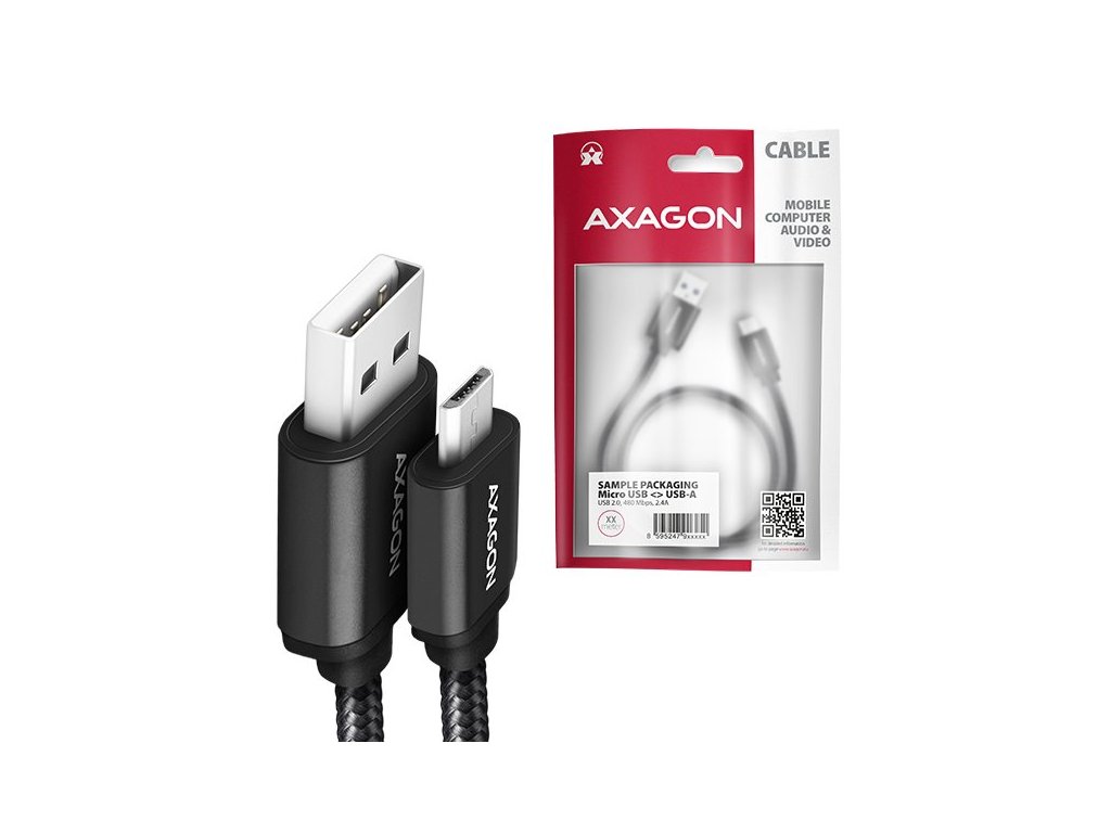 AXAGON BUMM-AM20AB, HQ kábel microUSB <-> USB-A, 2 m