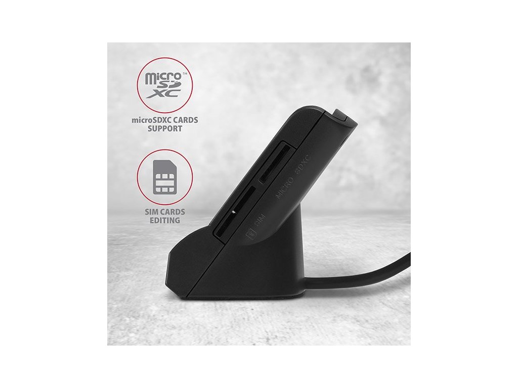 AXAGON CRE-SM2, USB-A StandReader 4-slotová čítačka čipových kariet (eCard) + SD/microSD/SIM, 1,3 m kábel