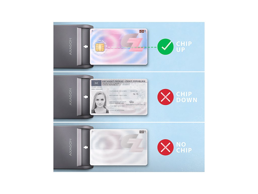 Kompaktná stolová čítačka čipových kariet AXAGON CRE-SM3T FlatReader s rozhraním USB 2.0. Je vhodná najmä ako čítačka identifikačných kariet na použitie s počítačmi, ktoré majú vstup USB. Najrozšírenejší konektor USB-A zabezpečuje pripojenie k novým aj starším počítačom. Vďaka funkcii Plug&Play je čítačka okamžite funkčná bez potreby inštalácie ovládačov. Ak chcete naďalej pracovať s vloženou kartou, stačí nainštalovať príslušnú aplikáciu. Čítačka je plne kompatibilná s eObčankou (CZ) alebo eID klientom (SK). Čítačka podporuje všetky bežné formáty kontaktných čipových kariet, čipových kariet a iných kariet vrátane kontaktných bankových platebních kariet alebo kontaktných elektronických občianskych preukazov. Kompatibilita so všetkými bežnými operačnými systémami, ako sú Windows, Linux, MacOS a Android, umožňuje široké možnosti použitia na počítačoch a notebookoch, ako aj na smartfónoch a tabletoch. Inteligentná LED indikácia sa po zmene aktivity rozsvieti len na krátky okamih, potom zhasne a neruší používateľa zbytočným svetlom. Kompaktný dizajn, kvalitná konštrukcia, protišmyková podložka a dostatočne dlhý kábel zaručujú jednoduché a bezproblémové používanie. Vstup: - USB 2.0, protokol CCID. - Späť kompatibilita s USB 1.1. - Pripojenie k počítaču prostredníctvom konektora USB 2.0 typu A samec. - Na pripojenie k telefónu alebo tabletu s konektorom USB-C odporúčame redukciu USB-C -> USB-A, napr. AXAGON RUCM-AFAC. Na pripojenie k telefónu s konektorom micro USB odporúčame redukciu OTG micro USB -> USB-A. Čítačka kariet: - 1 slot podporuje karty ATM/CAC/ID/IC/SIS. - Podpora kontaktných čipových kariet kompatibilných s normou ISO 7816, triedy A, B a C (5 V, 3 V a 1,8 V). - Podpora normy ISO 7816, EMV 4.1 (EMV 2000 úroveň 1). - Podporované protokoly T=0 a T=1, I2C, SLE 4432/42 (S=10), SLE 4418/28 (S=9). - Podpora štandardu PC Smart Card PC/SC 2.0. - Podpora Microsoft Smart Card pre Windows. - Podpora kariet I2C SLE4418, SLE4428, SLE4432, SLE4442, SLE4436, SLE5536, SLE6636, AT88SC1608, AT45D041. - Kompatibilné so čítačkou kariet Microsoft WHQL USB Smart Card Reader. - V súlade so štandardom FIPS 201. Ďalšie funkcie: - Kompatibilné s ovládačom Microsoft USB-CCID. - Podpora Plug and Play. - Podpora úsporného režimu, automatické prepnutie do úsporného režimu. - Napájanie čítačky prostredníctvom sběrnice USB (napájanie zo sběrnice). - LED dióda indikujúca vloženie karty (trvalé svetlo) a prenos údajov (blikanie). - Indikácia LED svieti len na krátky čas po zmene aktivity, potom zhasne a neruší zbytočným svetlom. - Gumová podložka na obmedzenie samovoľného pohybu na stole. - Rozmery 89 x 65 x 15 mm, dĺžka kábla 1,3 m. - Hmotnosť 56 g. Podporované operačné systémy: - Kompatibilné operačné systémy: Windows 7/8.1/10/11 a novšie, macOS, Linux a Android. - eObčanka (CZ) alebo eID klient (SK). Poznámka: Čítačka podporuje iba kontaktné karty, ktoré majú na povrchu viditeľné kontakty. Karty bez kontaktov, známe ako RFID, nie je možné v čítačke používať. Balenie v kartónovej krabici s otvorom na zavesenie obsahuje: - USB čítačku čipových kariet s 1,3 m pevným káblom, - viacjazyčný návod SK/DE/DK/ENG/ESP/FIN/FR/GR/HR/HU/IT/NL/PL/PT/RO/SK/SWE/TR/UA/BG/CNDodatočné parametre