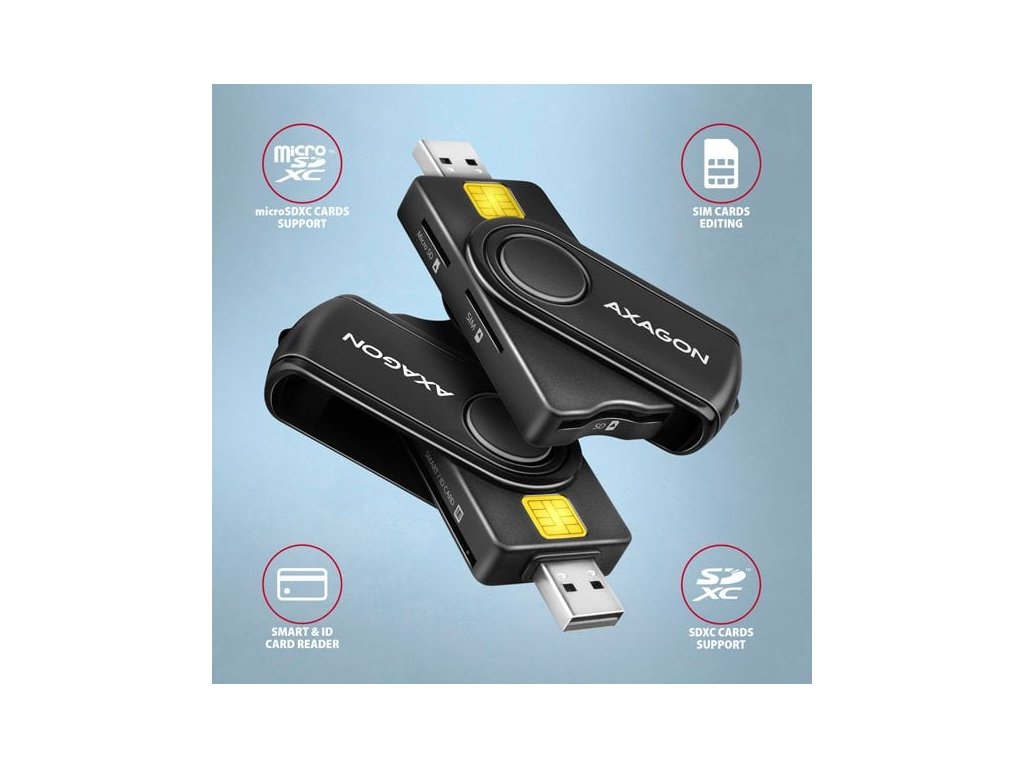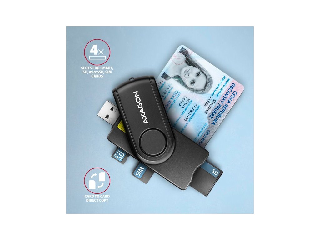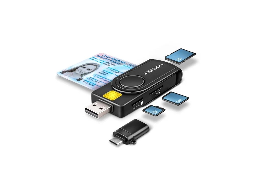 AXAGON CRE-SMP2A, USB-A PocketReader 4-slotová čítačka čipových kariet (eCard) SD/microSD/SIM
