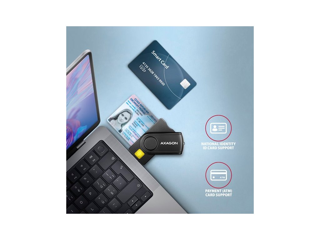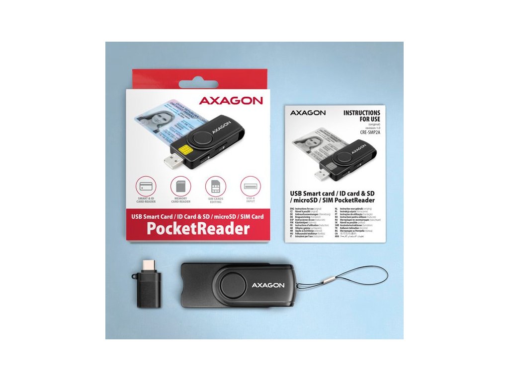 Kompaktná cestovná čítačka čipových kariet / identifikačných kariet AXAGON CRE-SMP2A PocketReader s rozhraním USB 2.0 obsahuje aj sloty pre karty SD, microSD a SIM. Čítačka podporuje všetky bežné formáty kontaktných Smart kariet, čipových kariet a iných kariet vrátane kontaktných bankových platebních kariet alebo kontaktných elektronických občianskych preukazov. Čítačka je plne kompatibilná s aplikáciou eCitizen. Vďaka slotu na kartu SIM vrátane softvéru na správu karty SIM, slotu na kartu SD a microSD možno čítačku používať aj na zálohovanie a prenos údajov. Kompatibilita so všetkými bežnými operačnými systémami, ako sú Windows, Linux, Mac OS a Android, umožňuje široké použitie v počítačoch a notebookoch, ako aj v telefónoch a tabletoch. Súčasťou balenia je aj adaptér USB-C <> USB-A na pripojenie k zariadeniam s konektorom USB-C. Otočná krytka pomáha chrániť konektor USB-A. Vďaka kompaktnému dizajnu a kvalitnej konštrukcii je táto čítačka jednou z najmenších kombinovaných čítačiek kariet Smart Card a pamäťových kariet na trhu. Vstup: - USB 2.0 Protokol CCID. - Späť kompatibilita s USB 1.1. - Pripojenie k počítaču prostredníctvom konektora USB 2.0 typu A samec. - Pripojenie k telefónu alebo tabletu s konektorom USB-C prostredníctvom adaptéra USB-C -> USB-A. - Na pripojenie k telefónu s konektorom micro USB odporúčame adaptér OTG micro USB -> USB-A. Čítačka kariet: - Čítačka so štyrmi sloty s podporou nasledujúcich formátov: - Slot na čipové karty podporuje kontaktné karty ATM/CAC/ID/IC/SIS, - Slot micro SD podporuje karty microSD/microSDHC/microSDXC/TransFlash, - Slot SD podporuje SecureDigital, SDMC, MC, Dual Voltage, MMC mobile, RS-MMC, s adaptérom miniSD, miniSDHC, MMC Micro, - Slot na kartu SIM podporuje karty SIM štandardnej veľkosti (microSIM a nanoSIM s príslušným adaptérom). Podporované špecifikácie kariet Smart: - Podporuje kontaktné karty Smart v súlade s normou ISO 7816, triedy A, B a C (5 V, 3 V a 1,8 V). - Podpora normy ISO 7816, EMV 4.1 (EMV 2000 úroveň 1). - Podporované protokoly T=0 a T=1, I2C, SLE 4432/42 (S=10), SLE 4418/28 (S=9). - Podpora štandardu PC Smart Card PC/SC 2.0. - Podpora Microsoft Smart Card pre Windows. - Podpora kariet I2C SLE4418, SLE4428, SLE4432, SLE4442, SLE4436, SLE5536, SLE6636, AT88SC1608, AT45D041. - Kompatibilné so čítačkou kariet Microsoft WHQL USB Smart Card Reader. - V súlade so štandardom FIPS 201. Podpora špecifikácií pamäťových kariet flash: - Kompatibilné s SD 1.0/1.1 (SD - Secure Digital, do 2 GB). - Kompatibilné s SD 2.0 (SDHC - Secure Digital High Capacity, do 32 GB). - Kompatibilné s SD 3.0 (SDXC - Secure Digital eXtended Capacity, do 2 TB). - Kompatibilný s MMC a eMMC 3.x/4.0/4.1/4.2. Ďalšie funkcie: - Kompatibilné s ovládačom Microsoft USB-CCID. - Podpora Plug and Play. - Umožňuje súčasné používanie slotu SIM a microSD. - Softvér SIMedit na úpravu a zálohovanie kontaktov si môžete stiahnuť z karty podpory produktu na adrese www.axagon.eu. - Detekcia vloženia inteligentnej karty. - Podpora úsporného režimu, automatické prepnutie do úsporného režimu. - Napájanie čítačky prostredníctvom sběrnice USB (bus-power). - LED dióda indikujúca vloženie karty (trvalé svetlo) a prenos údajov (blikanie). - Rozmery 80 x 30 x 15 mm. - Hmotnosť 20 g. Podporované operačné systémy: - MS Windows XP / Vista / 7 / 8 / 8.1 / 10 / 11 a novšie, Windows Server 2003 / 2008 / 2012 / 2016 / 2019 / 2022 a novšie (podporované všetky 3- a , 10.xa novšie, Linux s jadrom 2.4.xa novším, Android 8 a novější. Poznámka: Čítačka podporuje iba kontaktné karty, ktoré majú na povrchu viditeľné kontakty. Karta bez kontaktov je preto kartou RFID av čítačke ju nemožno použiť. Balenie v kartónovej krabici s otvorom na zavesenie obsahuje: - USB čítačku čipových kariet, - adaptér USB-C <> USB-A, - kroužok na kľúče, - viacjazyčný návod SK/DE/DK/ENG/ESP/FIN/FR/GR/HR/HU/IT/NL/PL/PT/RO/RU/SK/SWEDodatočné parametre