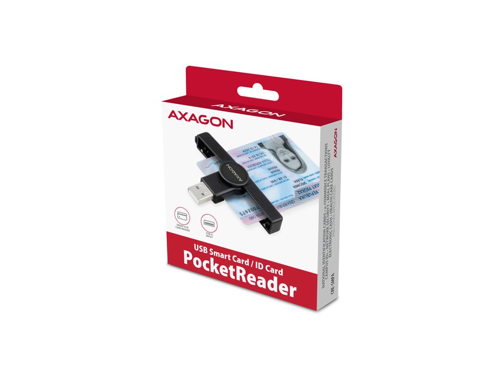 AXAGON CRE-SMPA, USB-A PocketReader čítačka kontaktných kariet Smart card, (eCitizen, eID klient)