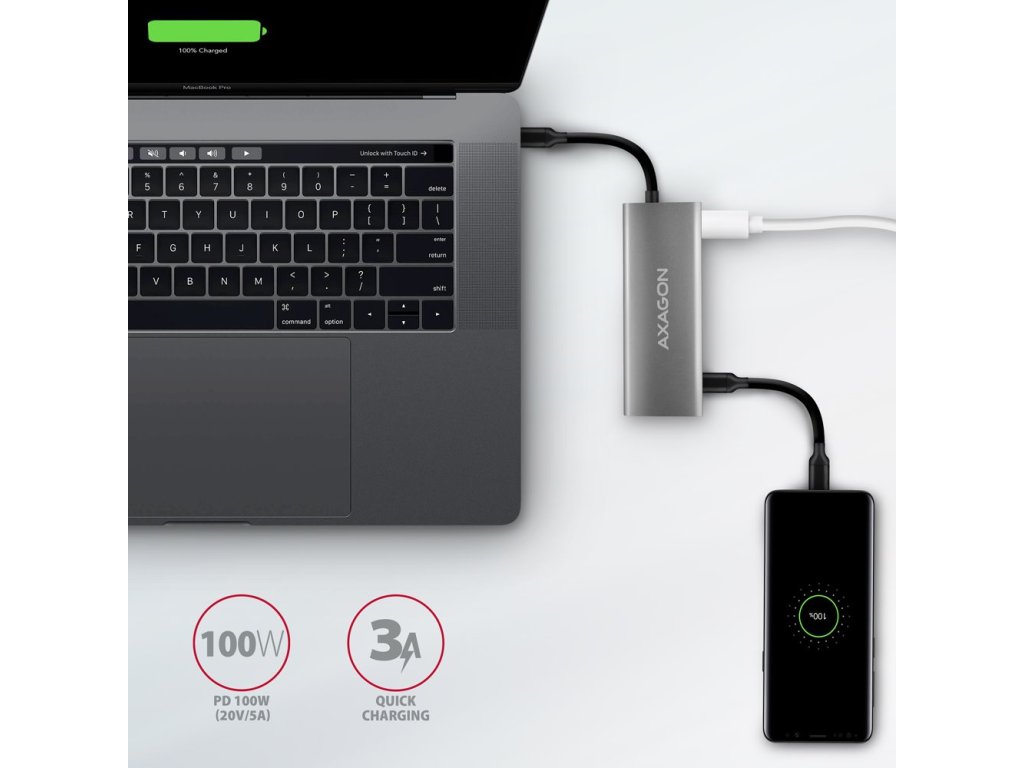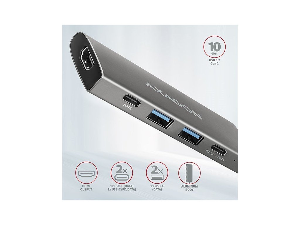 AXAGON HMC-5G2, rozbočovač USB 10 Gb/s, 2x USB-A, 2x USB-C, HDMI 4k/60, PD 100W, kábel USB-C 13 cm