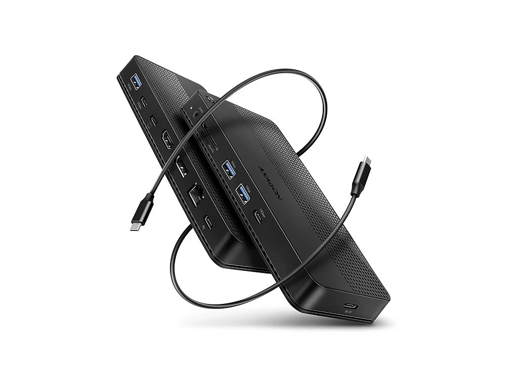 Dokovacia stanica AXAGON HMC-U4 DUAL 4K DISPLAY premení váš notebook, tablet alebo telefón na multimediálne centrum. Vďaka najmodernejšej technológii USB4 ponúka táto dokovacia stanica celkovú dátovú priepustnosť až 40 Gb/s. Môžete tak naplno využiť aj to najnáročnejšie počítačové príslušenstvo a vychutnať si špičkový zážitok. Či už sledujete video v rozlišení 8K alebo pracujete s dvoma monitormi 4K súčasne, táto technológia poskytuje výkon, ktorý potrebujete. Rozhranie USB4 ponúka výhodu kompatibility s rozhraním Thunderbolt a zároveň podporuje spätnú kompatibilitu s predchádzajúcimi generáciami USB. Pripojte svoj notebook k dokovacej stanici 12v1 prostredníctvom dodaného 80 cm kábla. V okamihu máte k dispozícii rýchlu čítačku kariet SD a microSD a konektory na pripojenie dvoch externých monitorov, piatich zariadení USB, slúchadiel alebo náhlavnej súpravy a napájania Power Delivery. Je však potrebné, aby port USB-C vášho zariadenia podporoval obrazový výstup (alternatívny režim DisplayPort) a napájanie Power Delivery. Výstupy HDMI a DisplayPort umožňujú pripojiť externý monitor, televízor alebo projektor s rozlišením až 8K/30Hz Ultra HD, 4K/144Hz Ultra HD alebo 2K/240Hz Quad HD s podporou viackanálového prenosu zvuku. Vďaka podpore HDR si môžete vychutnať bohatšie farebné spektrum a živšie kontrasty pre ešte lepší vizuálny zážitok. Pripojením dvoch monitorov súčasne získate rozlíšenie až 4K/144 Hz na výstupe portu DP a 4K/60 Hz na výstupe HDMI. Všetky podporované rozlíšenia a funkcie sú priamo závislé od podpory pripojeného monitora a notebooku. Dokovacia stanica je vybavená tromi 10Gb/s výstupmi USB-C a USB-A a dvoma 5Gb/s výstupmi USB-A. Týchto päť portov USB umožňuje pripojiť externé disky, flash disky, myš, tlačiareň a ďalšie príslušenstvo USB. Porty USB tiež nabíjajú mobilné telefóny a tablety s výkonom až 7,5 W. Čítačka pamäťových kariet podporuje čítanie a zápis všetkých verzií kariet SD (UHS-II) a microSD (UHS-I) s kapacitou až do 2 TB. Karty UHS-II dosahujú rýchlosť až 156 MB/s (plný duplex) alebo 312 MB/s (polovičný duplex), samozrejmosťou je podpora starších kariet UHS-I (max. rýchlosť 104 MB/s). Čítačka kariet umožňuje súčasnú prácu s kartami v oboch slotoch a priame kopírovanie medzi nimi. Na pripojenie stereofónnych sluchádiel, náhlavnej súpravy alebo aktívnych reproduktorov môžete využiť 3,5 mm zvukový výstup. Ten je vybavený kvalitným D/A prevodníkom, ktorý podporuje vzorkovanie až do 384 kHz pri 24 bitoch. Budete si môcť vychutnať vynikajúcu kvalitu zvuku, ktorá je ideálna pre bezstratové formáty, ako sú FLAC, WMA, WAV, APE, AAC alebo ALAC. Gigabitová sieťová karta rozšíri váš počítač o rýchle a stabilné sieťové pripojenie, doplní chybajúci konektor RJ-45 Ethernet alebo pridá ďalšiu sieťovú kartu. Vstup USB-C (PD) je určený pre nabíjačku Power Delivery. Vďaka tomu sa notebook aj dokovacia stanica môžu napájať priamo z nabíjačky PD pomocou technológie Power Delivery 3.0 s výkonom až 100 W. Vďaka dodatočnému napájaniu cez vstup USB-C (DC 5V) môžete zvýšiť napájanie pri prevádzke bez pripojenej nabíjačky PD a pripojiť k multiportovému rozbočovaču zariadenia s vyššou spotrebou. Na zapnutie a vypnutie dokovacej stanice slúži tlačidlo na hornej strane dokovacej stanice. Vďaka dômyselnej konštrukcii so štyrmi gumenými nožičkami zostane dokovacia stanica pevne na svojom mieste. Elegantný vrúbkovaný povrch na hornej strane nezanecháva otlačky prstov. Ventilačné otvory na spodnej strane zabezpečujú dostatočnú cirkuláciu vzduchu, takže sa dokovacia stanica neprehrieva ani pri veľkom zaťažení. Vstup (pripojenie k počítaču alebo mobilnému zariadeniu): - USB4 40Gb/s (USB4 verzia 1.0), konektor USB-C samica. - Kompatibilný s Thunderbolt 3/4, USB 10 Gb/s, USB 5 Gb/s. Vstup (napájanie): - USB Power Delivery 3.0 - 100W port (iba napájanie), konektor USB-C samica (PD). - Napájanie PD musí podporovať mobilné zariadenie aj sieťová nabíjačka. - Prídavné napájanie pre externé disky pripojené cez rozbočovač, konektor USB-C samica (DC 5V). Odporúčané napájanie 5V/2A. Výstupy USB: - 2x port USB 5Gbps, konektor USB-A samica. - 1x port USB 10 Gb/s, konektor USB-A samice. - 2x port USB 10Gbps, konektor USB-C samice. - Rozbočovač USB-C zvládne pripojenie dvoch externých diskov súčasne. - Nabíjajte mobilné zariadenia (včítane iPadu) preudom až 1,5 A z portov USB-A rozbočovača. Výstupy videa: - 1x port HDMI, konektor HDMI A samica. - 1x port DP, konektor DisplayPort samica. Maximálne podporované rozlíšenie: - Laptop s portom USB4 40Gbps alebo Thunderbolt 4: - 1 monitor - do 8K/30Hz, 4K/144Hz Ultra HD, 2K/240Hz Quad HD, 1080p/360Hz Full HD - 2 monitory - do 4K/14 144Hz Quad HD, 2x 1080p/240Hz Full HD - Notebook s portom USB 10Gbps: - 1 monitor - až 8K/30Hz, 4K/144Hz Ultra HD, 2K/240Hz Quad HD, 1080p/360Hz Full HD - 2 monitory 2K/144Hz Quad HD, 2x 1080p/240Hz Full HD Funkcia videa: - Kompatibilné aj so zariadeniami s portami Thunderbolt 3. - V prípade zariadení Apple so systémom macOS je maximálna obnovovacia frekvencia obvykle obmedzená na 60 Hz. - Na dosiahnutie maximálneho rozlíšenia a snímkovej frekvencie na video výstupoch musí byť dokovacia stanica pripojená k portu USB-C s alternatívnym režimom DisplayPort (DP Alt Mode) vo verzii min. Vyžaduje sa aj vhodný aktualizovaný operačný systém a aktuálne grafické ovládače. - Podpora HDR (vysoký dynamický rozsah, podpora 10 bitov) - realistická reprodukcia svetlých a tmavých detailov. - Podpora HPD (Hot-Plug-Detect). - Podpora TMDS (Transition Minimized Differential Signaling). - Plná podpora HDCP 1.4 a 2.3 (ochrana digitálneho obsahu s vysokou šírkou pásma). - Podpora až 8-kanálového zvuku 